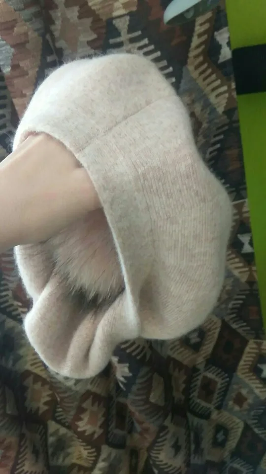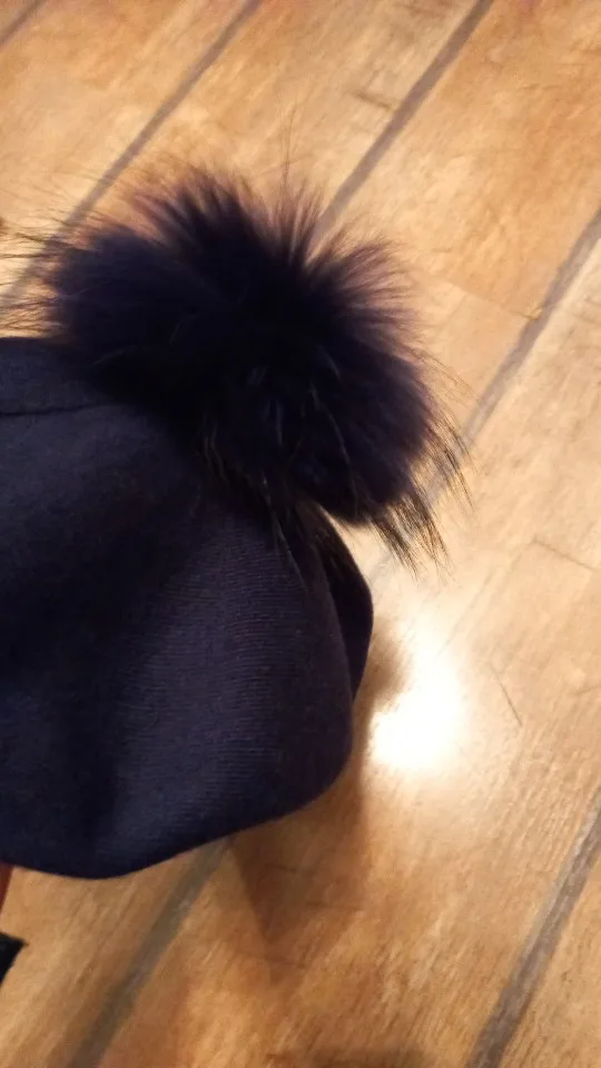Bérets en laine tricoté pour femmes, chapeau avec véritable fourrure de raton laveur, Pom, Angola, cachemire, collection automne et hiver décontracté