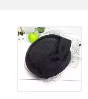 Bérets pour femmes, chapeau de mariée en laine, élégant, avec nœud en gaze, hôtesse de l'air, blanc, Fedora, Style Royal formel