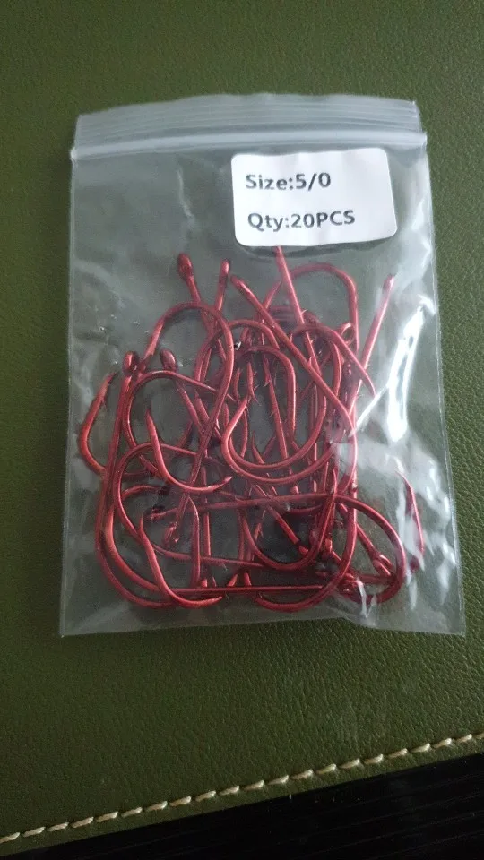 Bimoo – hameçon de pêche en fer barbelé, support d'appât inversé, crochets de pêche, taille 5/0 4/0 3/0 2/0 1/0, 20 pièces, rouge, etc.