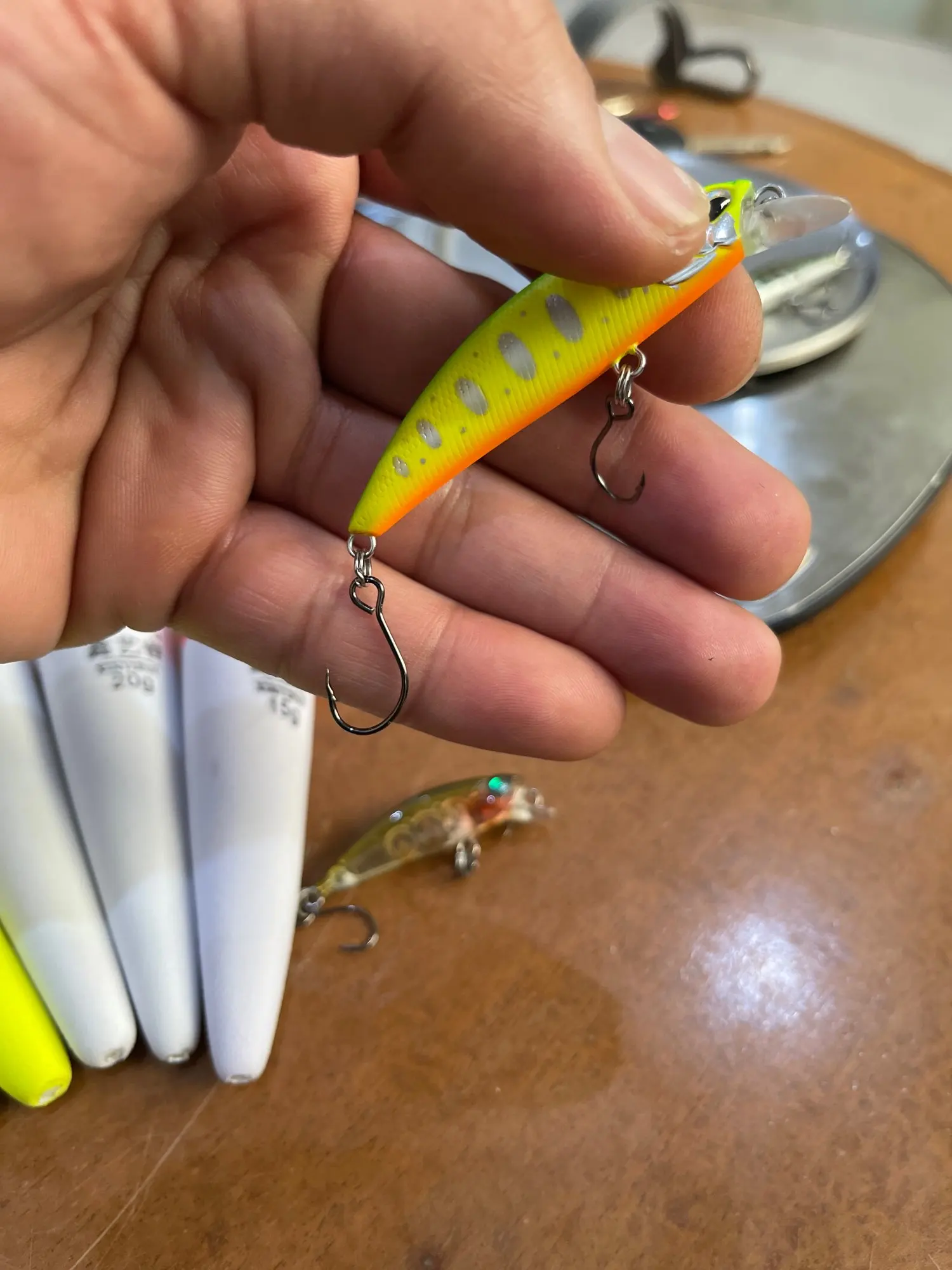 Hameçon très très petits, inutilisables, ressemblent à des jouets, ne pas acheter!!! ils vont partir directement à la poubelle Les tailles annoncées sont fausses