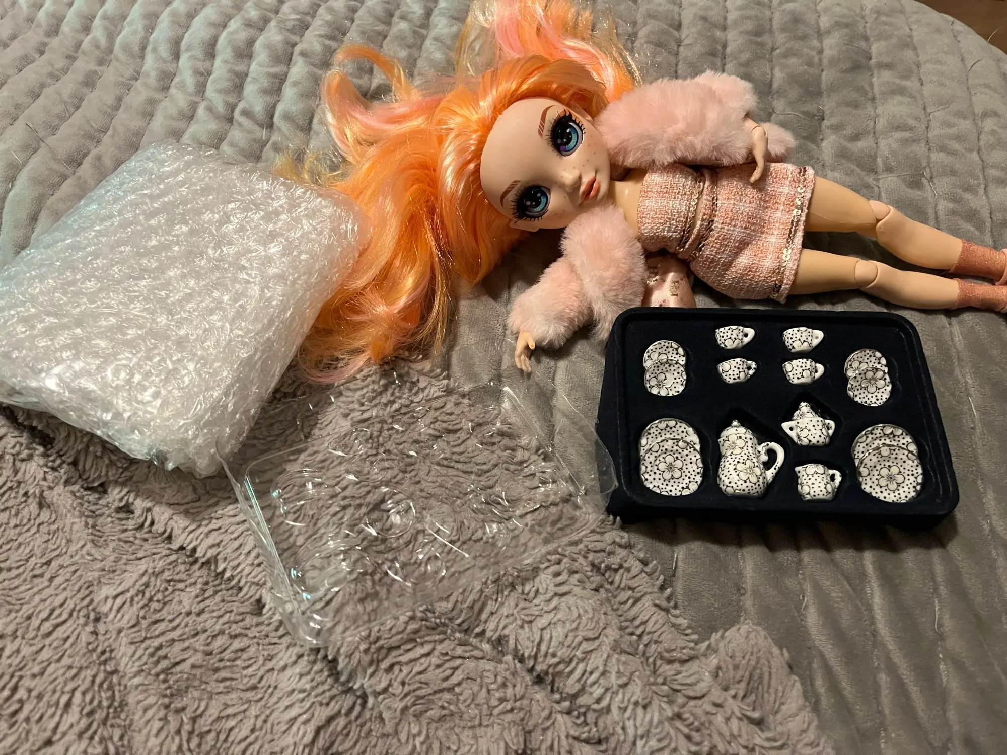 BJD – accessoires pour maison de poupée, Mini bureau, tasse de thé en chine, ensemble de bouteilles pour Barbie 1/6 ", décoration de maison de poupée, 11.5