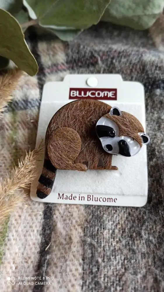 Blucome – broche en forme d'ours et raton laveur, vif et mignon, en acrylique, métal, en cuir, Animal, collier, Badge de revers, cadeau pour garçons et filles