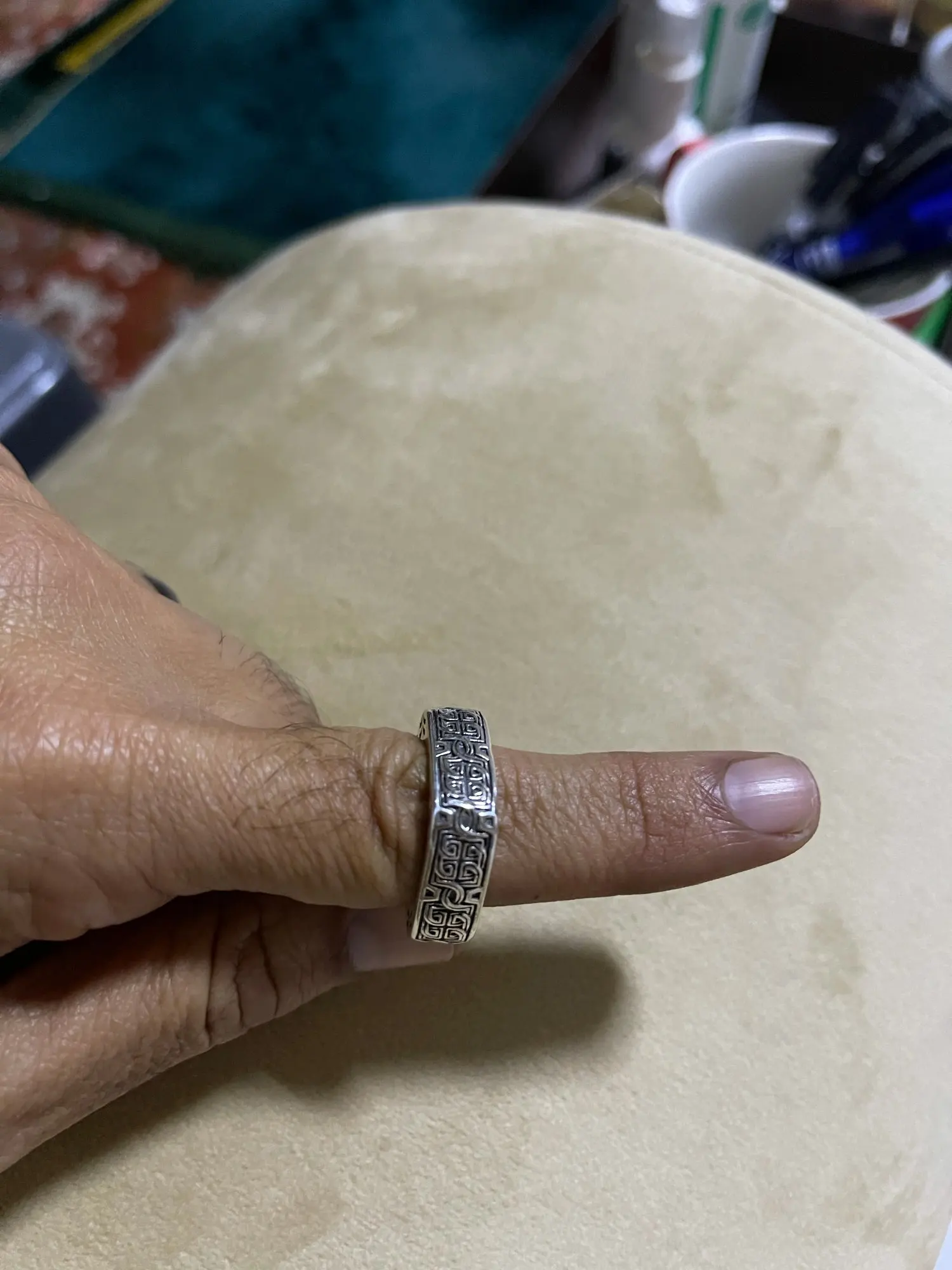 BOCA 100% réel s925 pur argent vintage carré disque antique mâle anneau personnalité dominateur puissance jeu Thai argent anneau autour