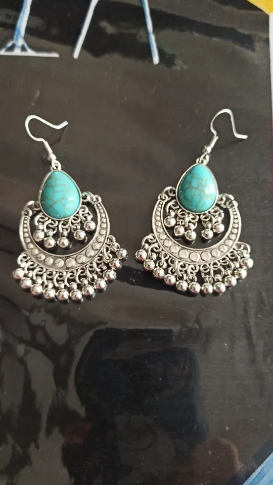 Bohême argent couleur gland boucles d'oreilles femmes 2022 gitane Turquoises pierre perle pendante boucles d'oreilles Turk bijoux Jhumka boucles d'oreilles