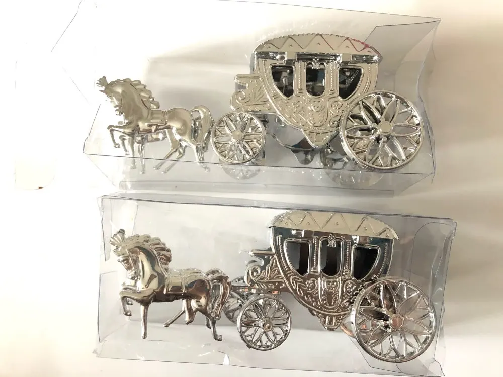 Boîte à bonbons en forme de chariot de cendrillon argenté 2 pièces, boîte à bonbons pour mariage, calèche royale, boîte en plastique pour cadeaux de fête, décoration de fête à réaliser soi-même