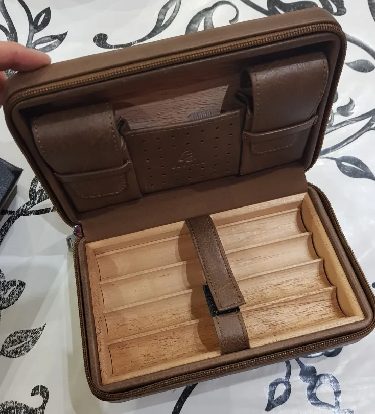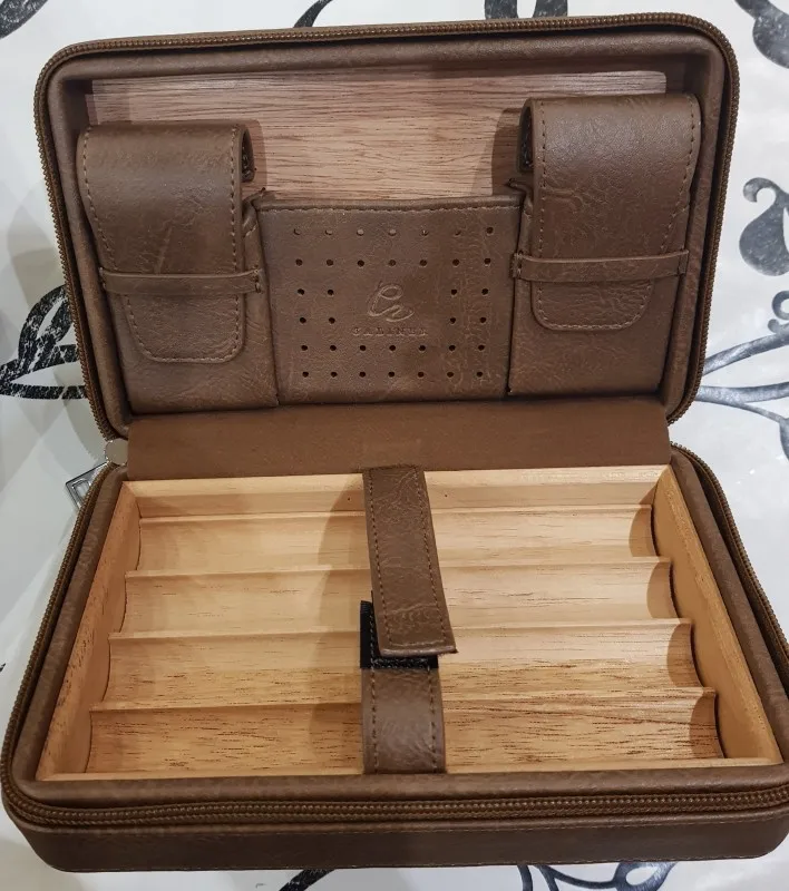 Boîte à cigares Portable GALINER boîte à cigares en cuir de voyage ensemble de cigares en bois de cèdre W briquet porte-coupe-cigare sac humidificateur