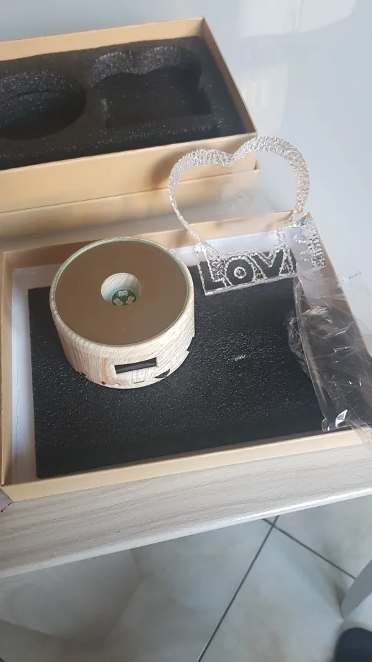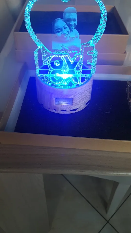 Boîte à musique rotative, Bluetooth, lumière Rgb, cristal, Laser personnalisé, cadre Photo en verre, cadeau de mariage, d'anniversaire et de noël
