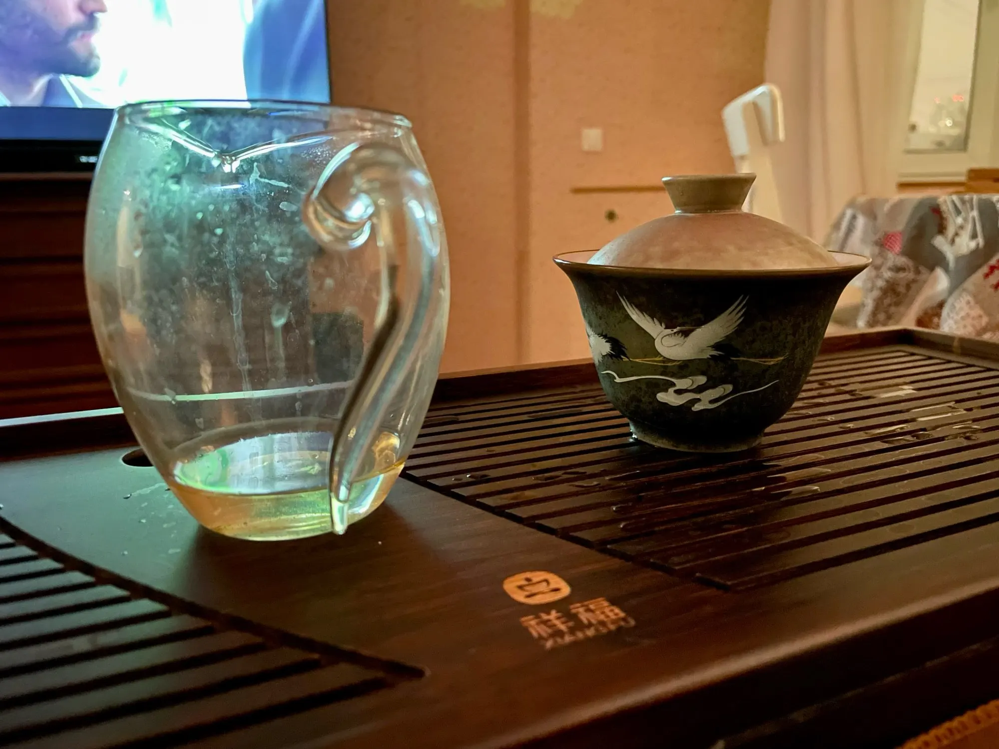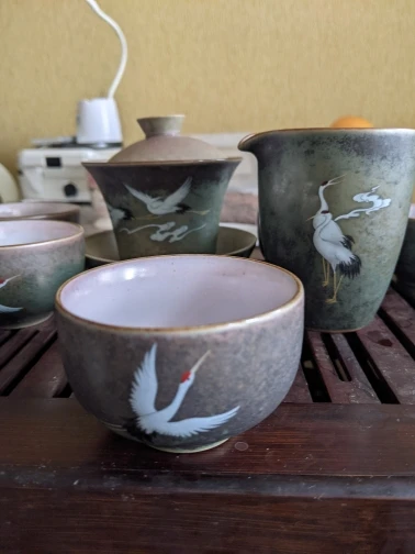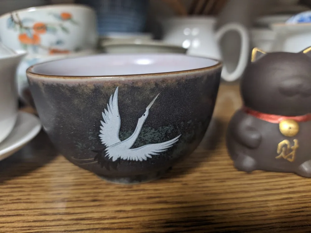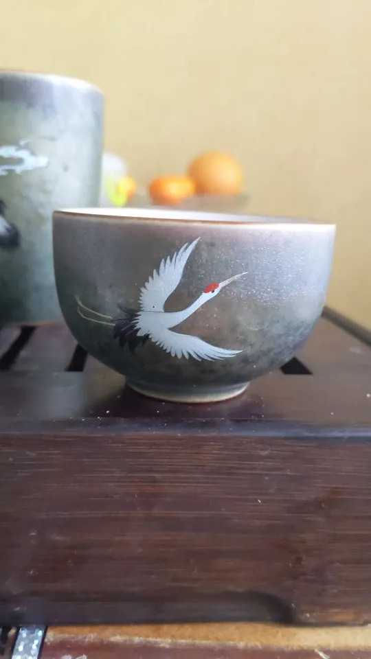 Bol à couvercle de thé en céramique rétro Anti-brûlure avec couvercle, bol à thé simple Sancai Gaiwan, bol à couverture de grue peint à la main brillant