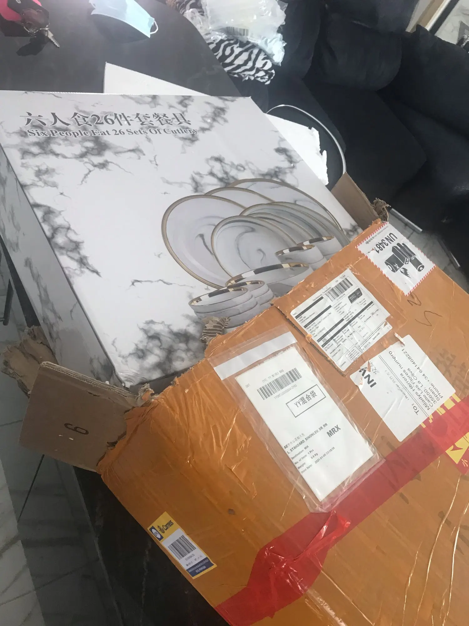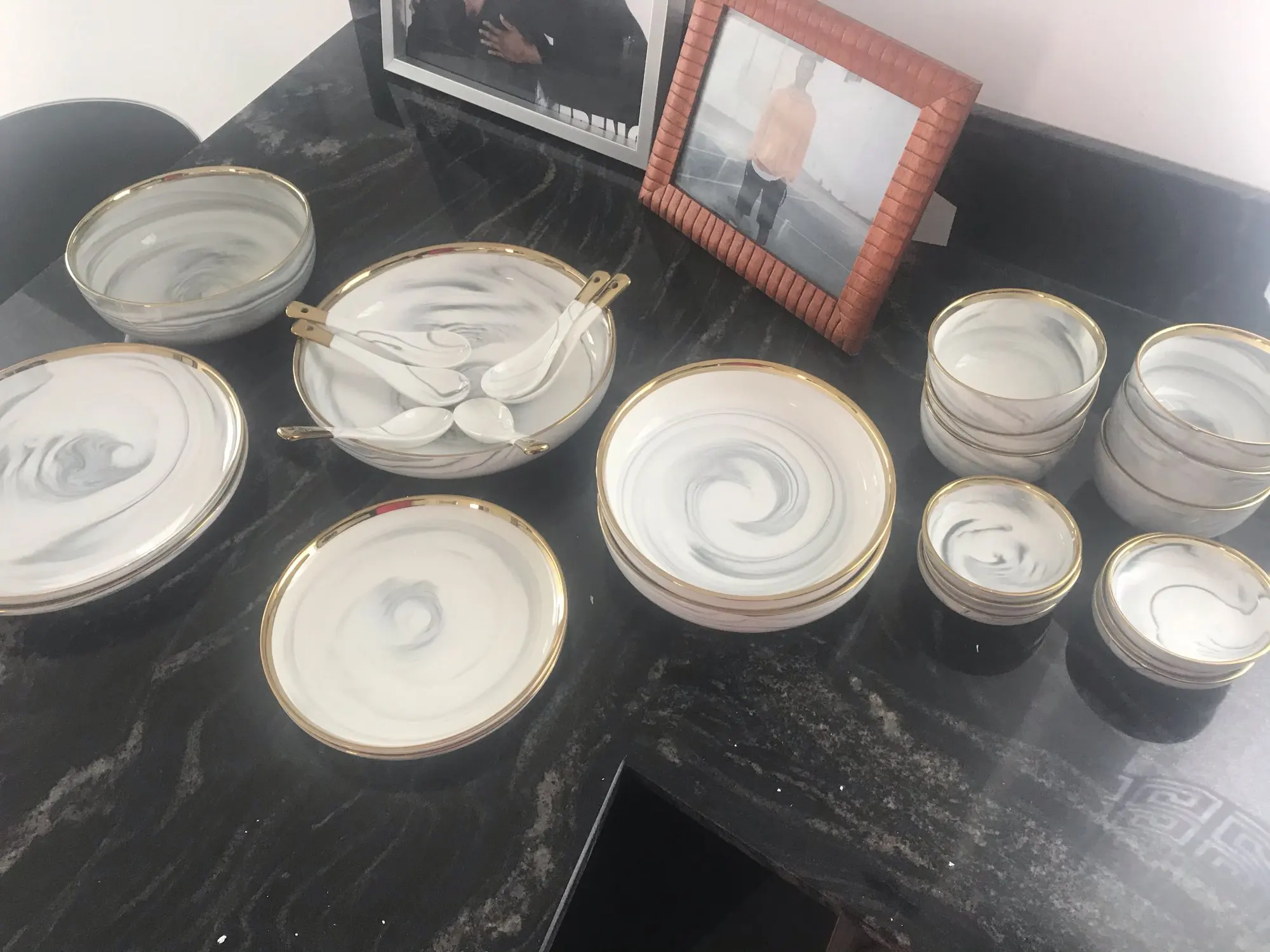 Bol à nouilles, plats à dîner céramique marbre, bol à riz salade, plats et assiettes, service de table 6 personnes