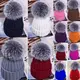 Bonnet de Ski tricoté en fausse fourrure pour femme, nouvelle mode, chaud, hiver, noir, bleu, blanc, rose