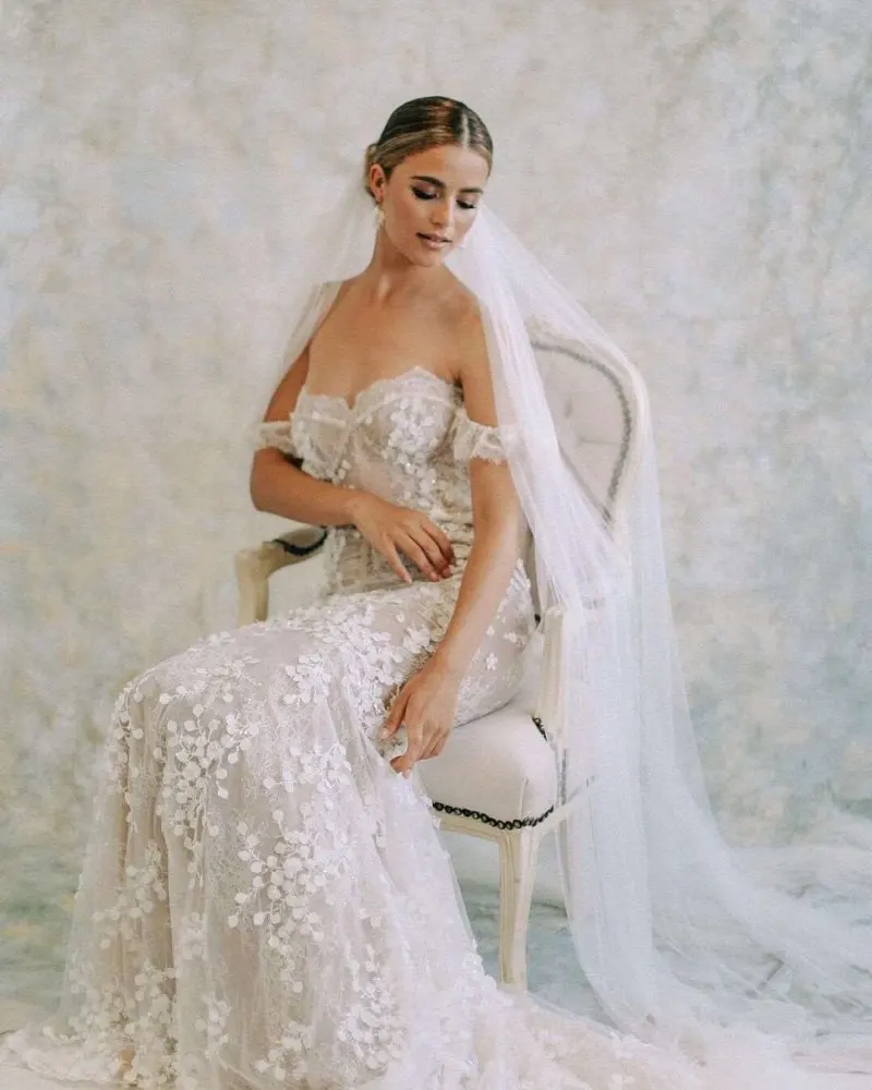 Booma – robe de mariée sirène en dentelle, épaules dénudées, tenue de princesse trompette