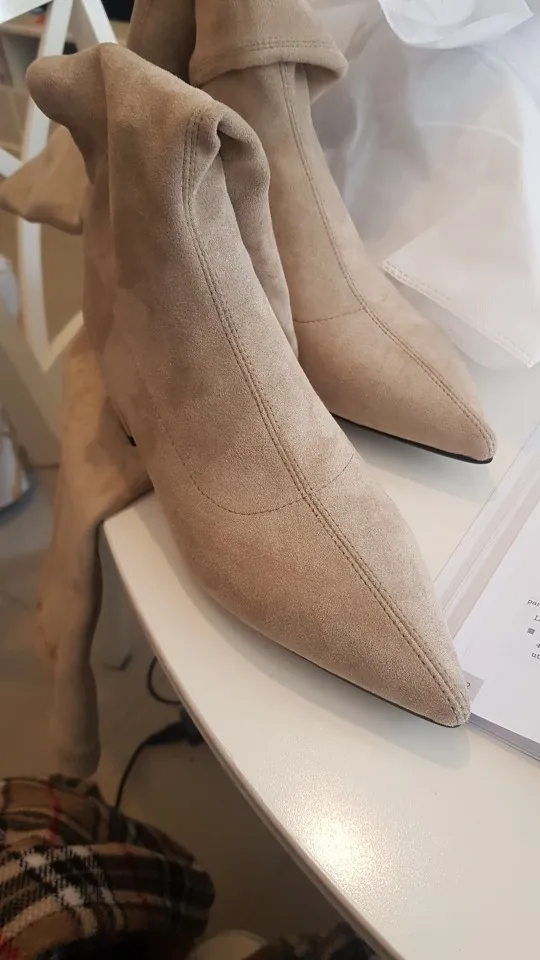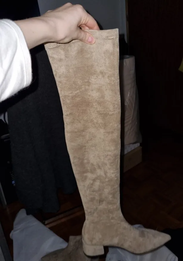 Bottes au dessus du genou pour femmes, Sexy, Slim, élastique, longues cuisses, bottes à bout pointu, en daim pour enfants, 33-43, 2022
