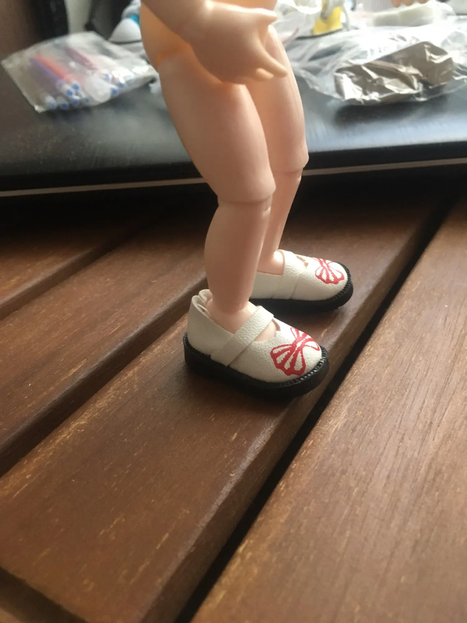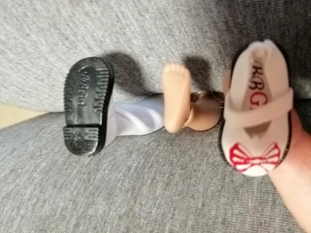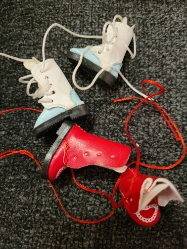 It's a simple pair of doll boots, gotta lace it up yourself