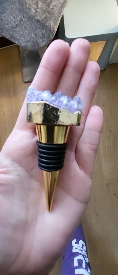 Bouchon réutilisable en améthyste naturelle, 1 pièce, pour le vin rouge et le Champagne, pour les cadeaux de mariage de la saint-valentin, doré, bouchon de bouteille