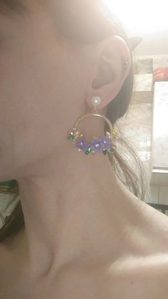 Boucles d'oreilles colorées en fleurs, en argile douce, anneau de dentelle, perle, cadeau d'anniversaire, bijoux de dîner sauvages, nouvelle collection