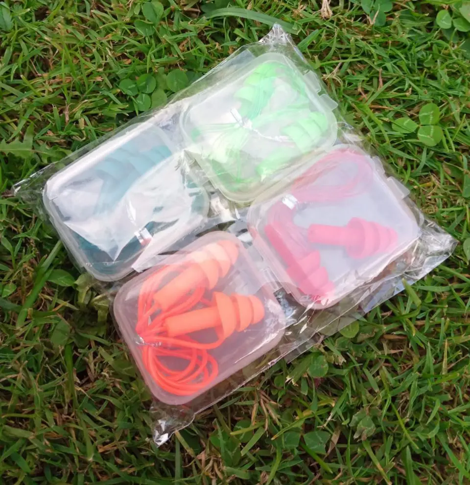 Boucles d'oreilles confortables en silicone, 4 pièces emballées par boîte, réduction du bruit, avec des cordes en PVC, protection pour la natation et le sommeil