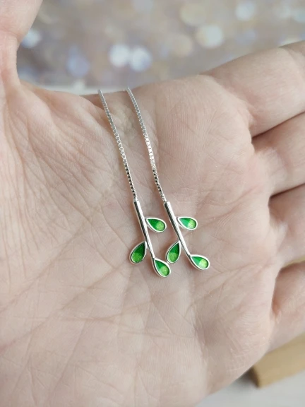 Boucles d'oreilles en argent Sterling 925, fil d'oreille, feuille verte fraîche, hypoallergénique, tempérament, personnalité, mode féminine, SEA062