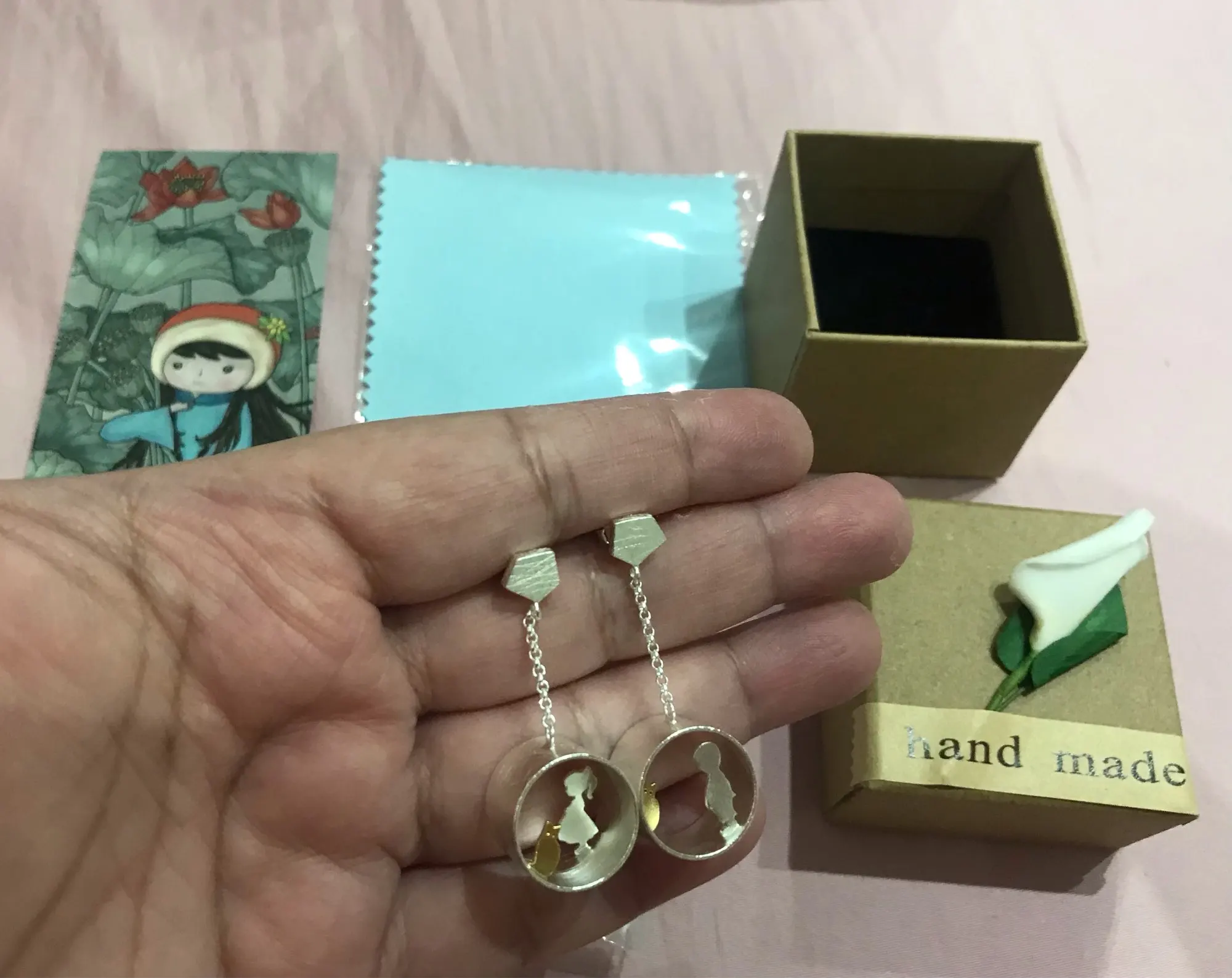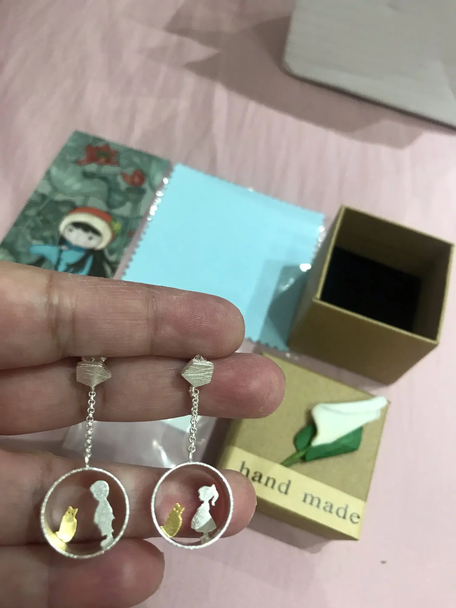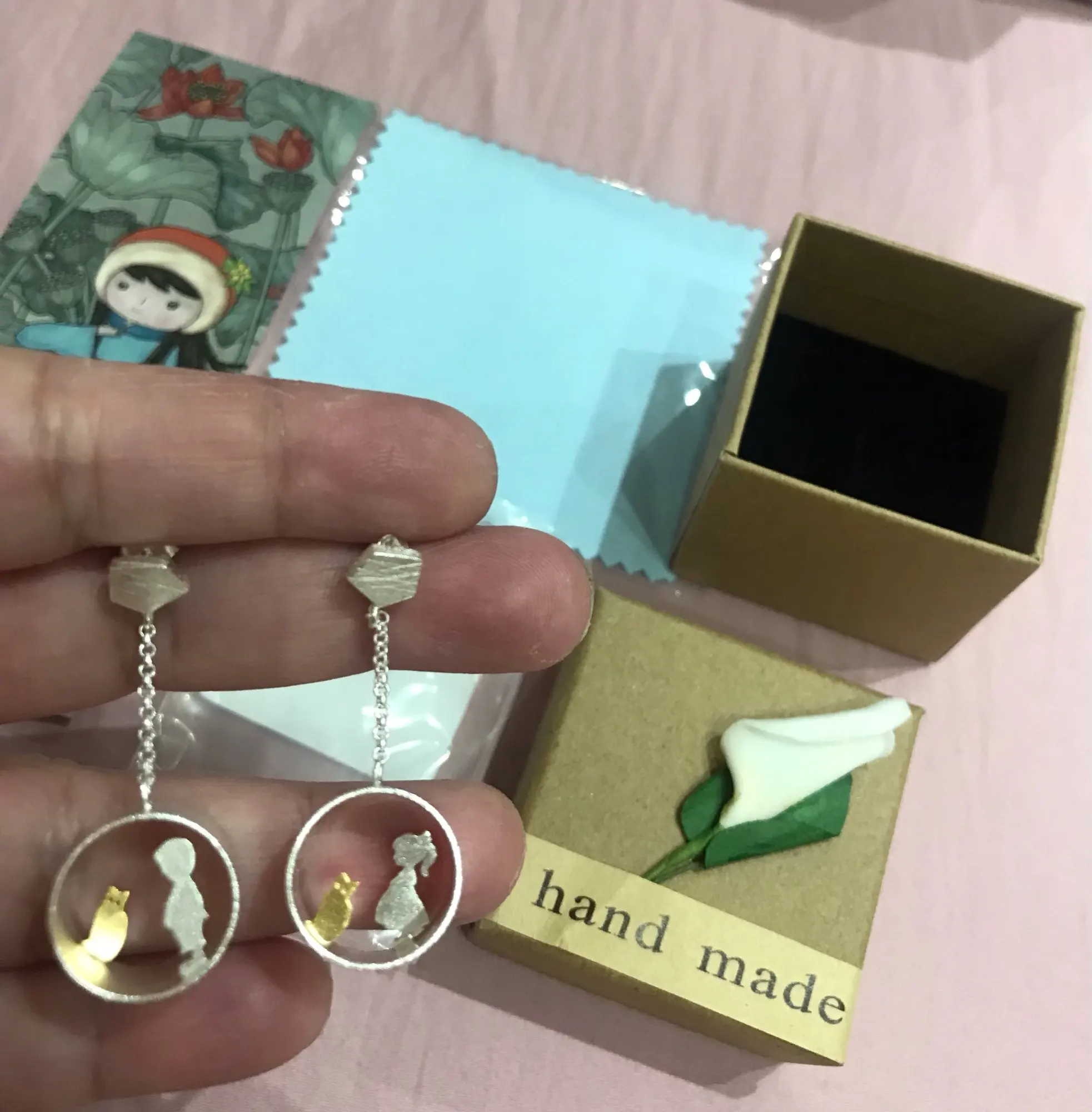 Boucles d'oreilles en argent Sterling 925 Lotus Fun pour femmes, bijoux créatifs, faits à la main, bijoux fins, rencontre d'amour avec goutte de chat, boucles d'oreilles Brincos