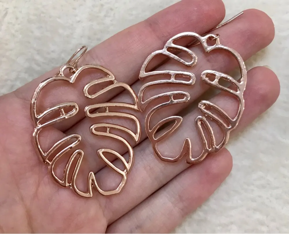 Boucles d'oreilles en feuille Monstera creuse bohème, boucles d'oreilles en forme de goutte de plante tropicale, bijoux de vacances, cadeaux de fête