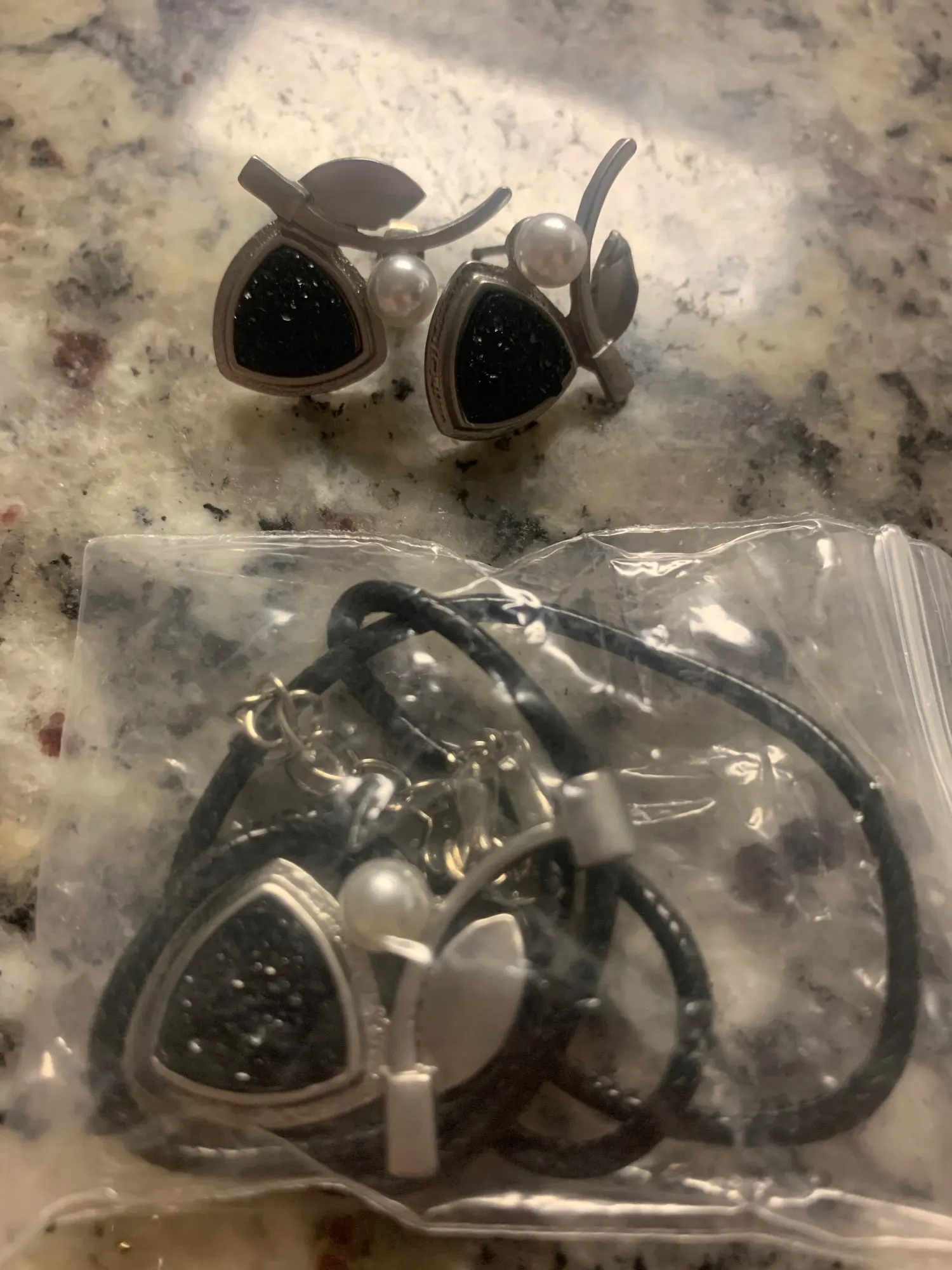 Leaf Pearl Black Jewelry Set