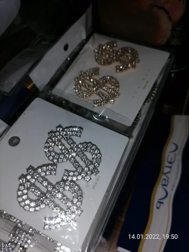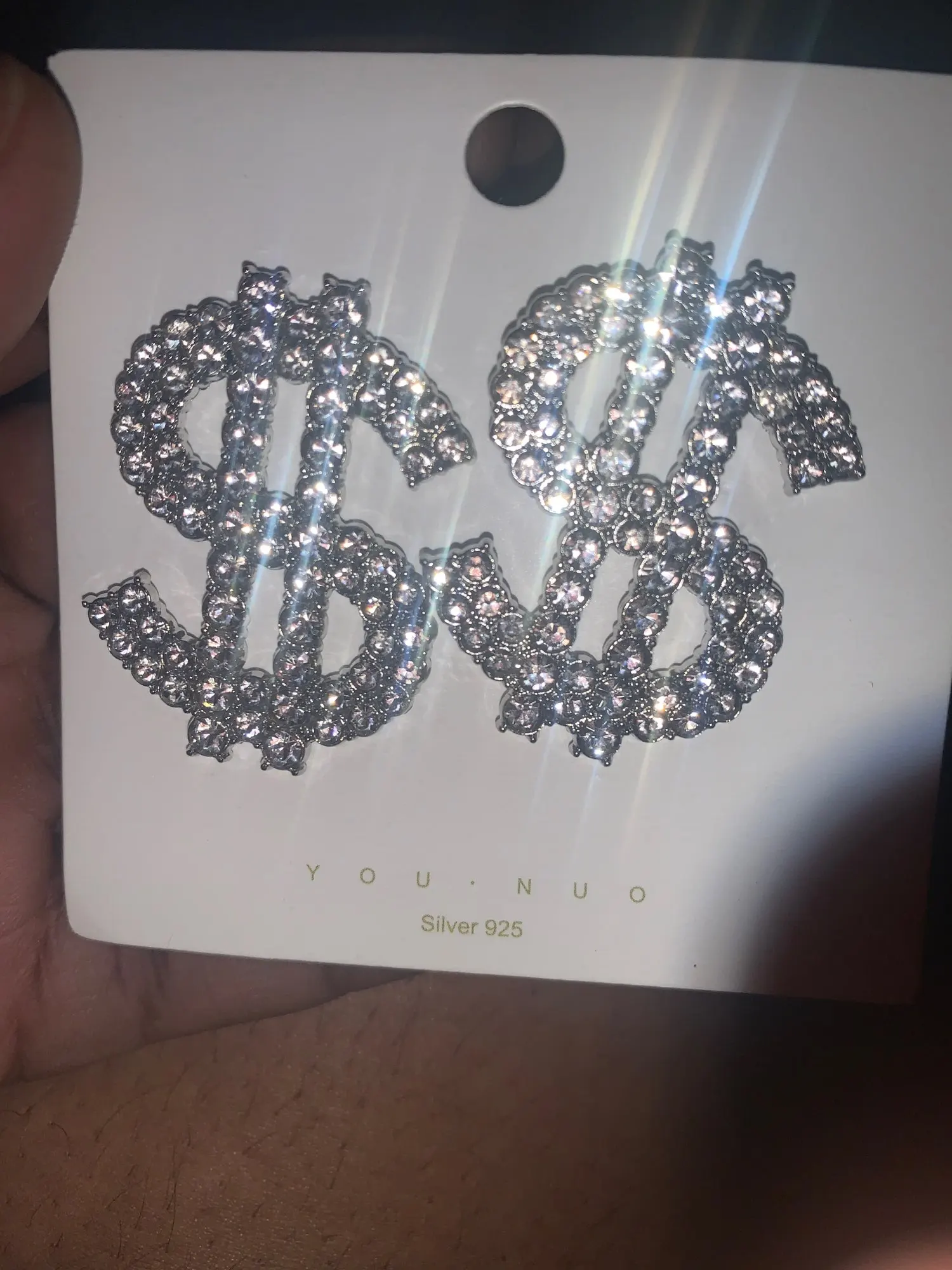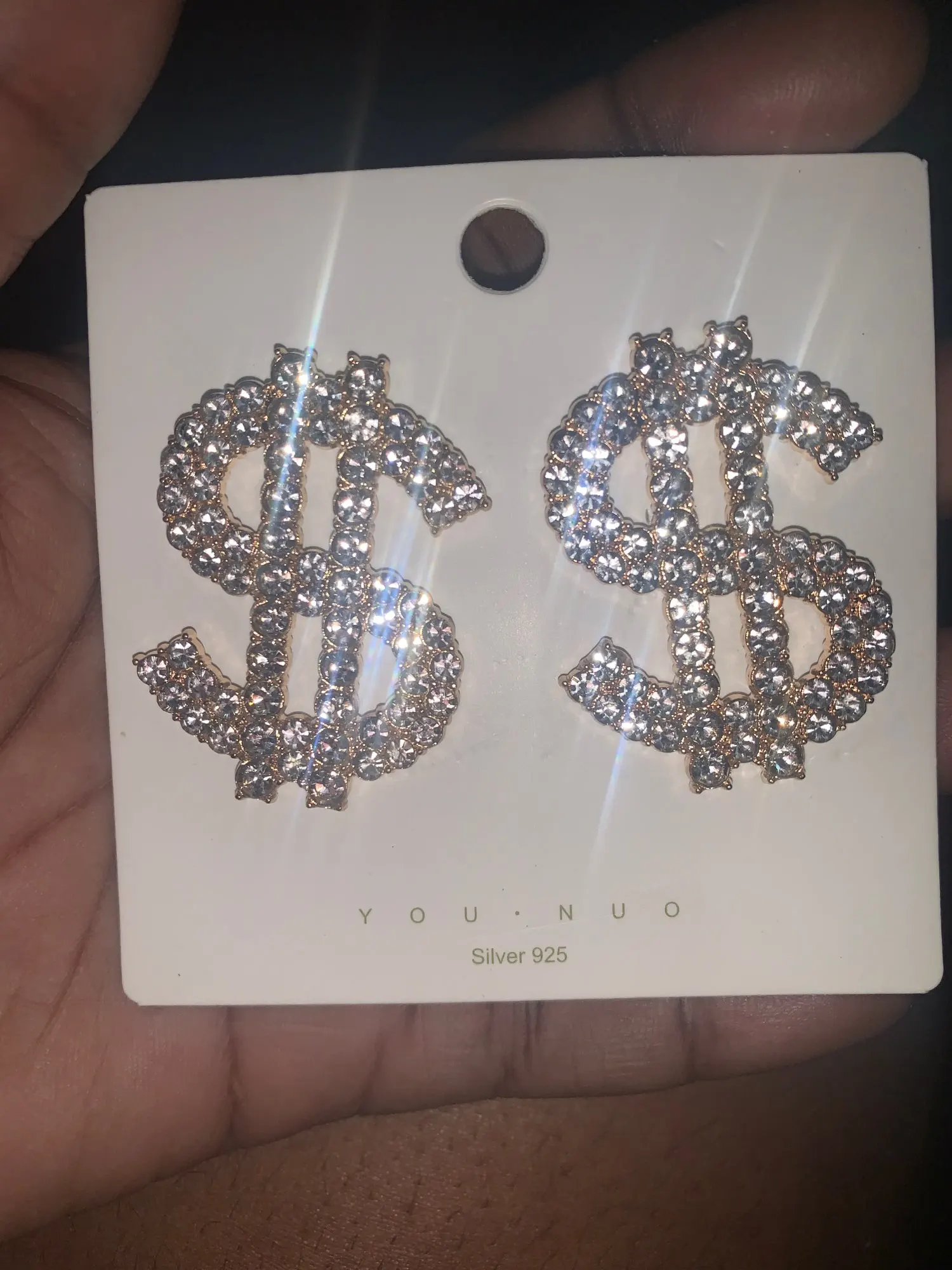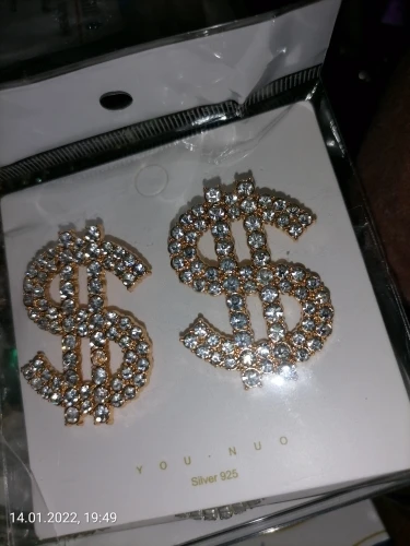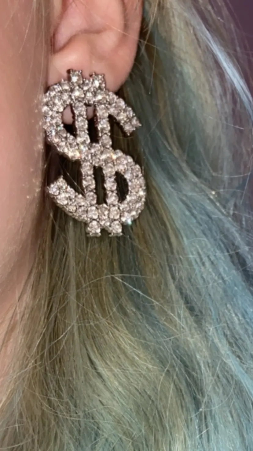 Boucles d'oreilles en strass en forme d'icône de Dollar, pendantes, brillantes, exagérées, pour femmes