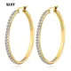 Boucles d'oreilles en Zircon demi-cercle pour femmes, incrustation, acier titane, couleur or, bijoux en cristal, idée cadeau, collection offre spéciale
