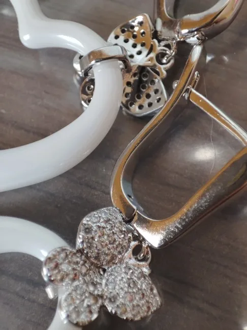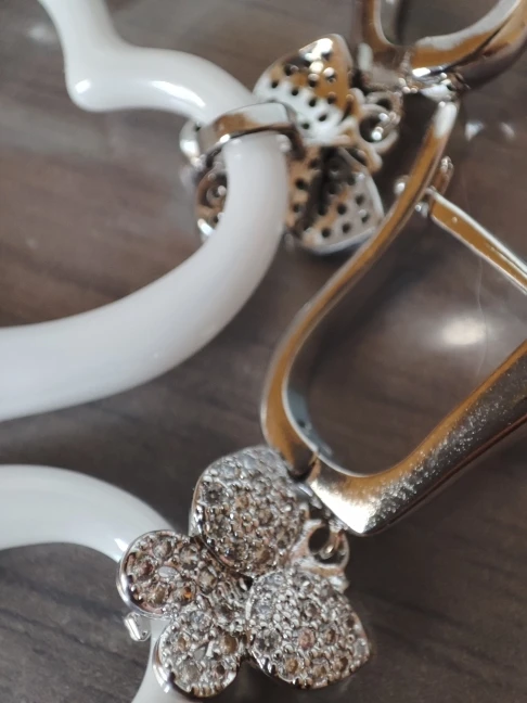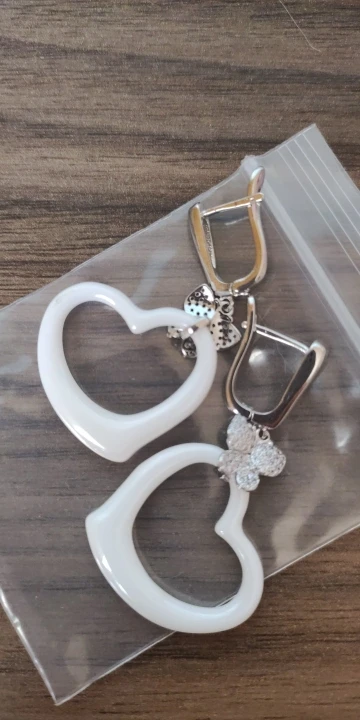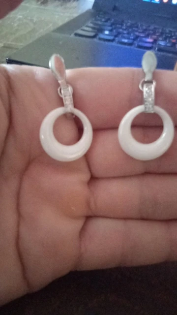 Reçues en 14 jours pour cette commande de 7 articles. J'ai choisi ces boucles d'oreilles pour accompagner mes nombreuses bagues en céramique. Elles sont identiques à l'image, je m'attendais à ce qu'elles soient un peu plus petites mais elles me conviennent quand même, pour comparer voyez mes photos j'aurai aimé qu'elles soient comme les blanches... Un poil plus petit. J'ai enlevé une étoile parce que la tige qui entre dans l'oreille est très épaisse et par conséquent pas confortables