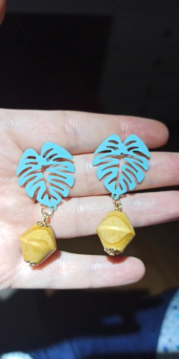Boucles d'oreilles pendantes pour femmes et filles, forme coréenne longue feuille de cœur, géométrique bleu, Design, en bois, à la mode, bijoux, accessoires pour cadeau-JQC
