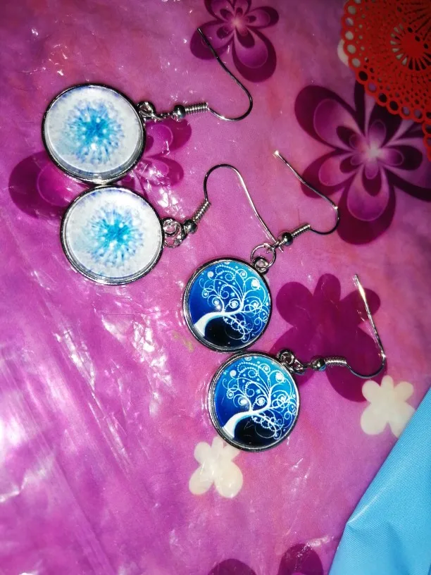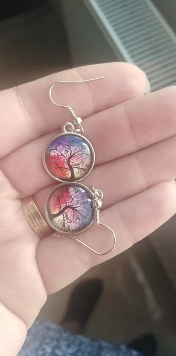Boucles d'oreilles pendentif arbre de vie en verre, en argent plaqué, bijoux, cadeaux pour elle