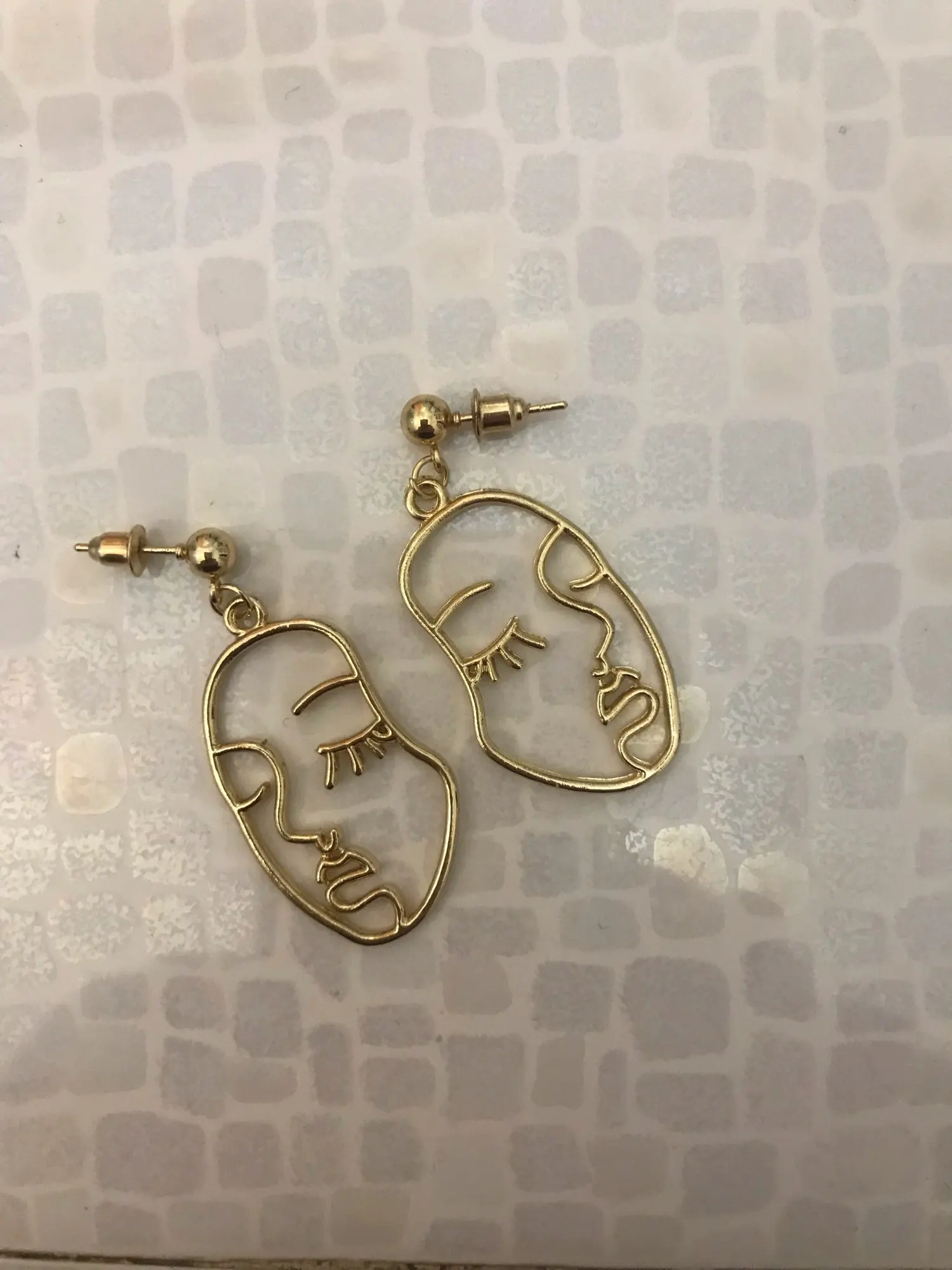 Boucles d'oreilles Punk en forme de visage humain pour femmes, boucles d'oreilles rétro, abstrait, ajouré, visage doré, bijoux à la mode
