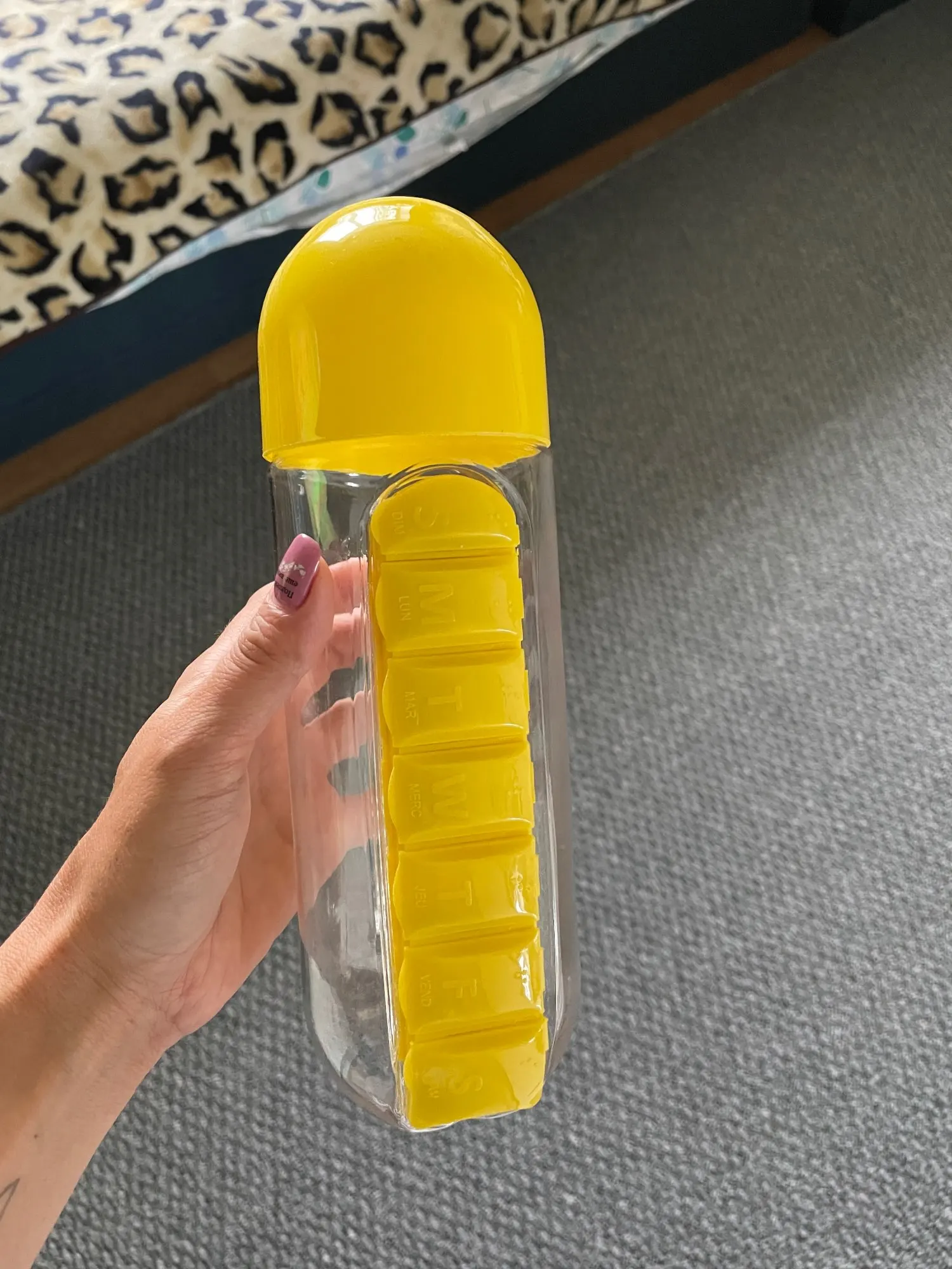 Bouteille en plastique anti-fuite 600ml, combinaison boîte à pilules quotidienne, gourde sportive à boire, bouteille à boire pour l'extérieur