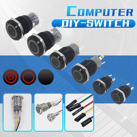 Bouton de démarrage modifié par ordinateur bouton de redémarrage bouton poussoir en métal 3-6V bricolage PC lampe interrupteur d'alimentation 12/16/19/22MM