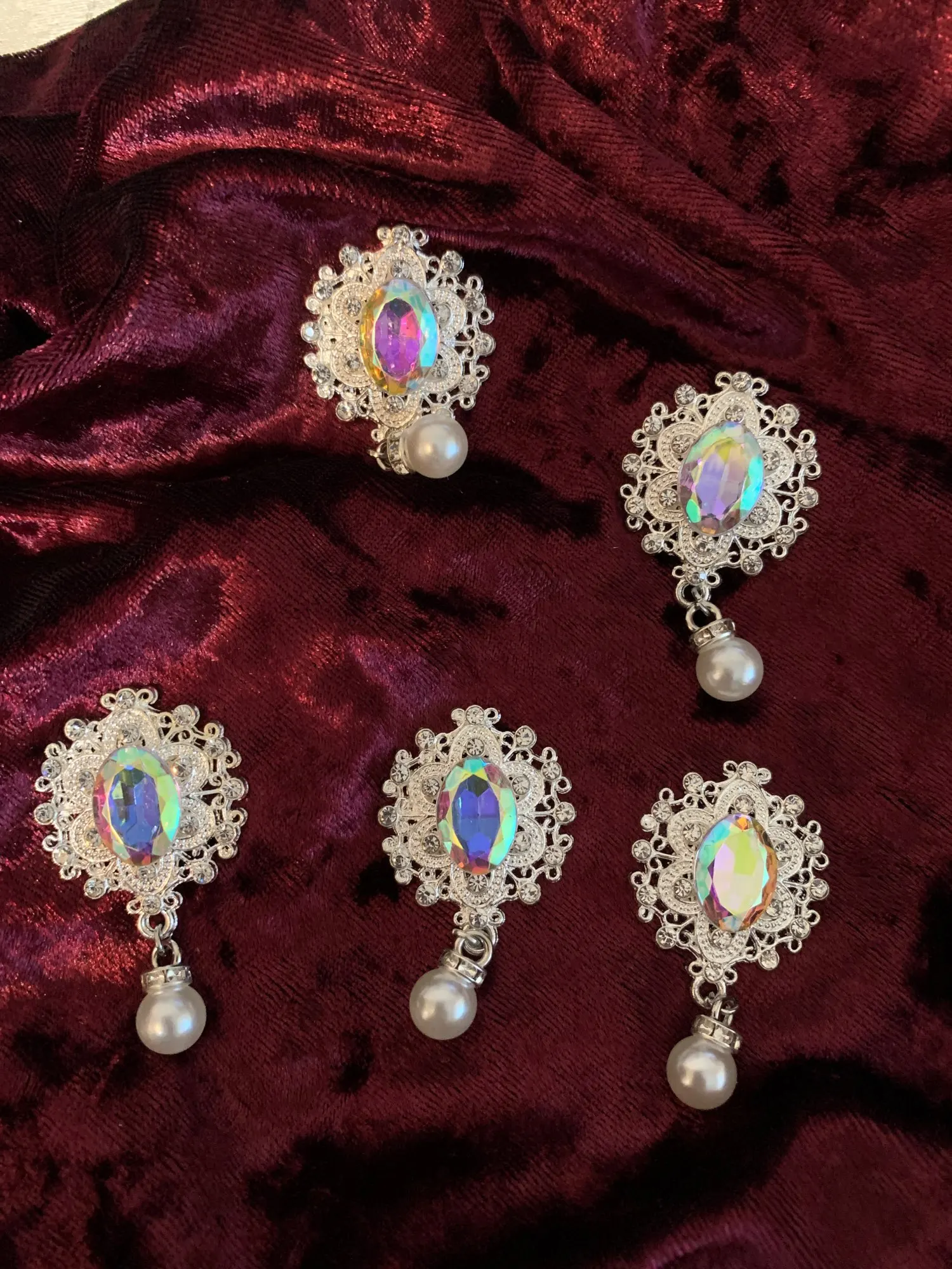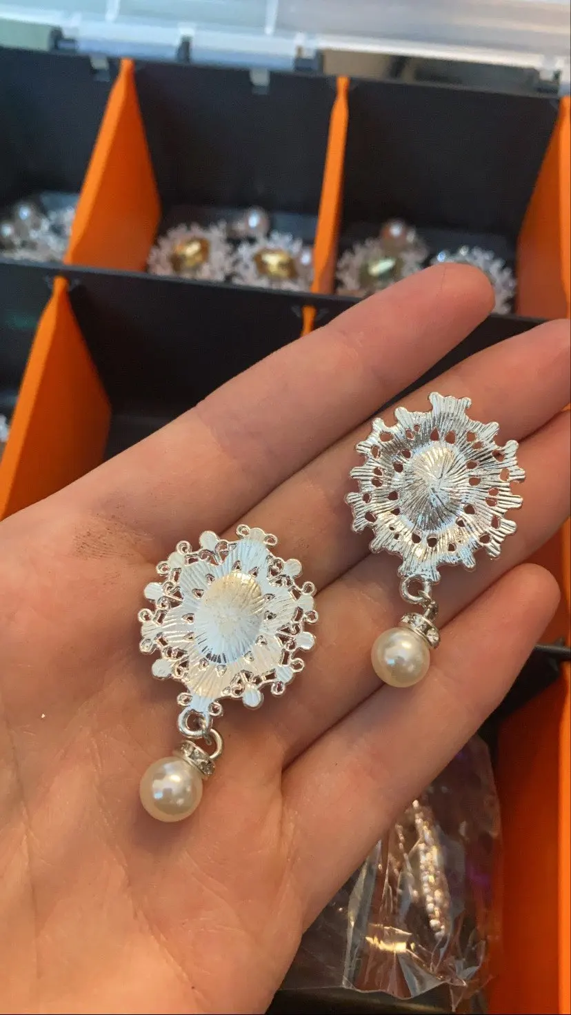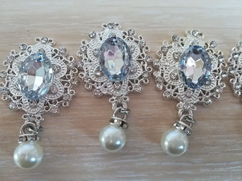 Bouton perlé avec strass, embellissements, Boutons faits à la main pour nœud papillon, décoratifs, 42x25mm, 5 pièces