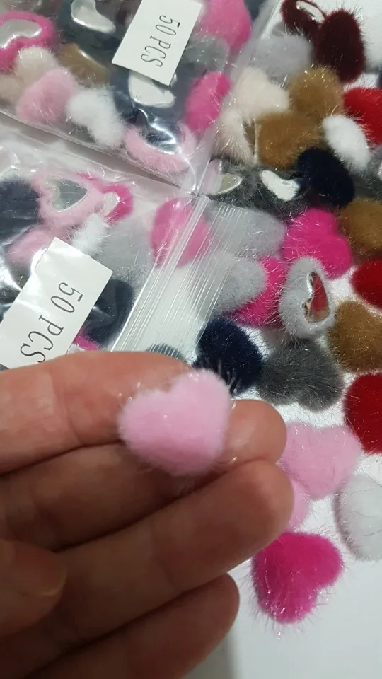 Boutons de cœur couverts en tissu Hariy 50pcs couleurs mélangées, Cabochon à dos plat, pour maison, jardin, artisanat, Scrapbooking, bricolage, 14*17mm