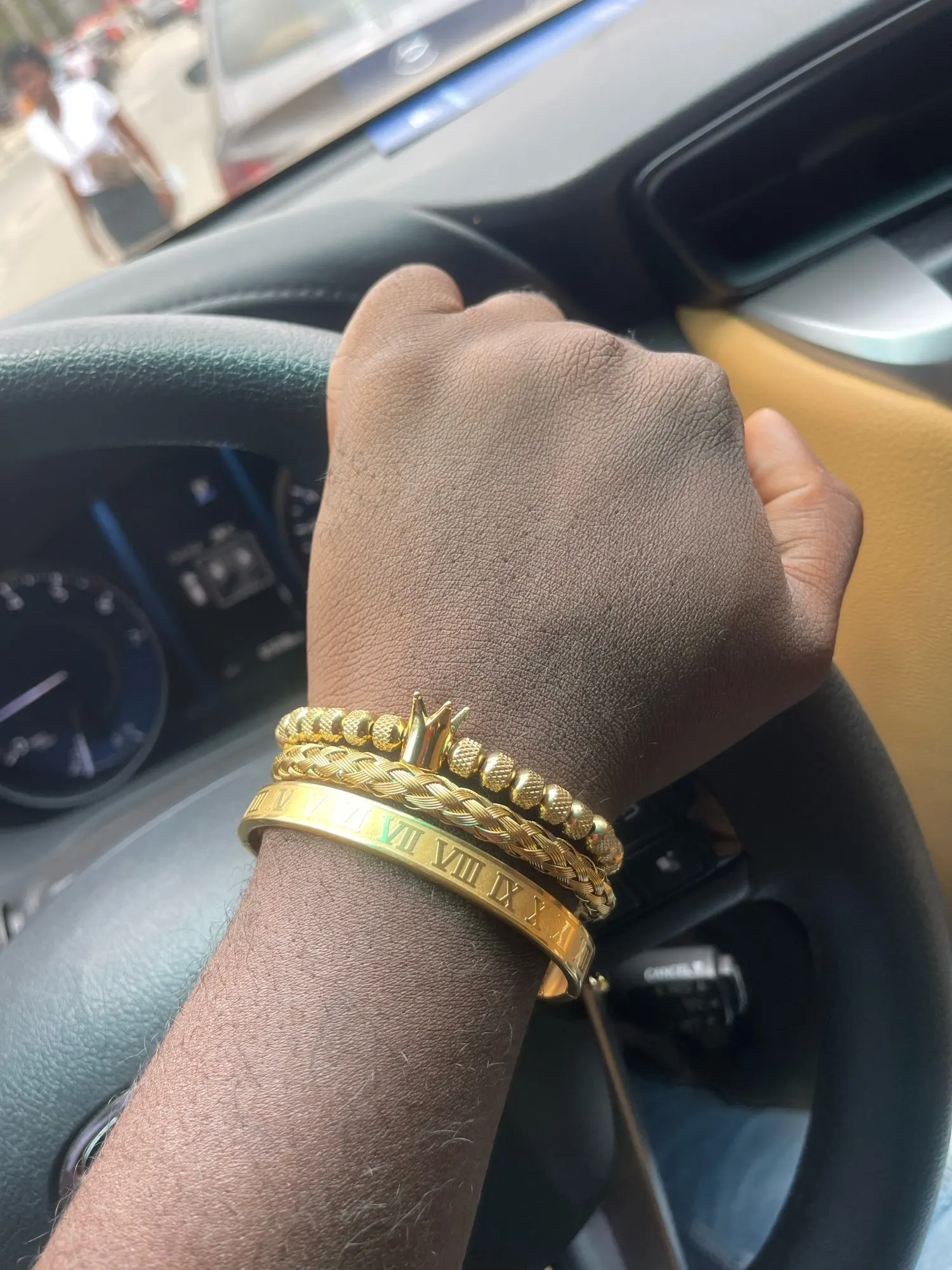 Bracelet à breloques couronne royale romaine de luxe hommes en acier inoxydable géométrie Pulseiras hommes ouverts Bracelets réglables Couple bijoux cadeau