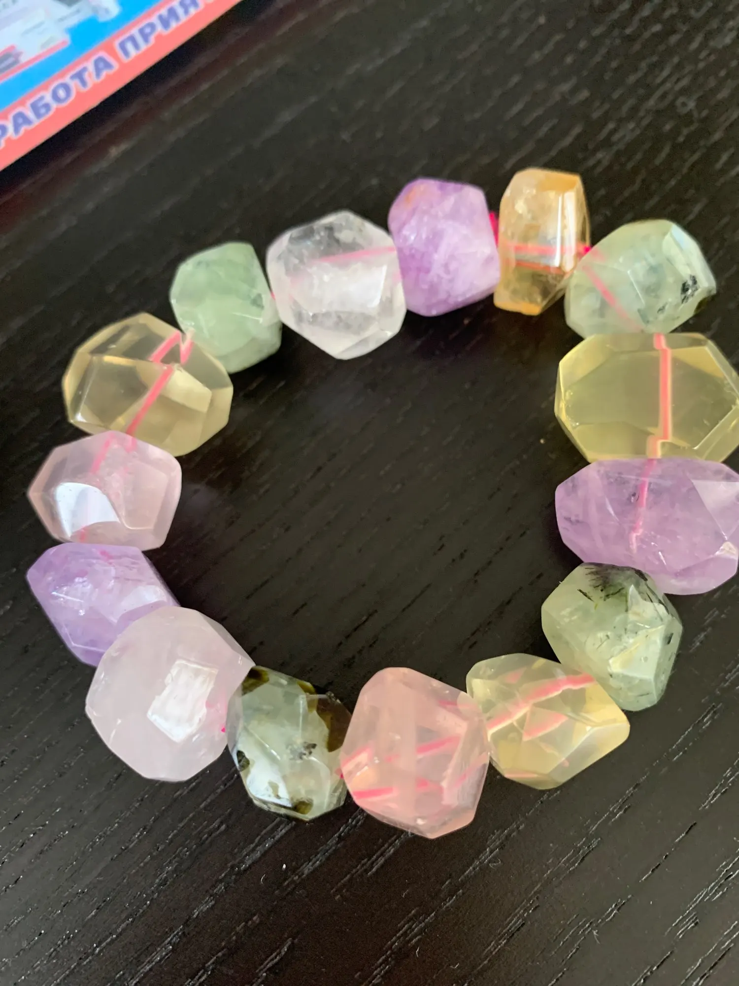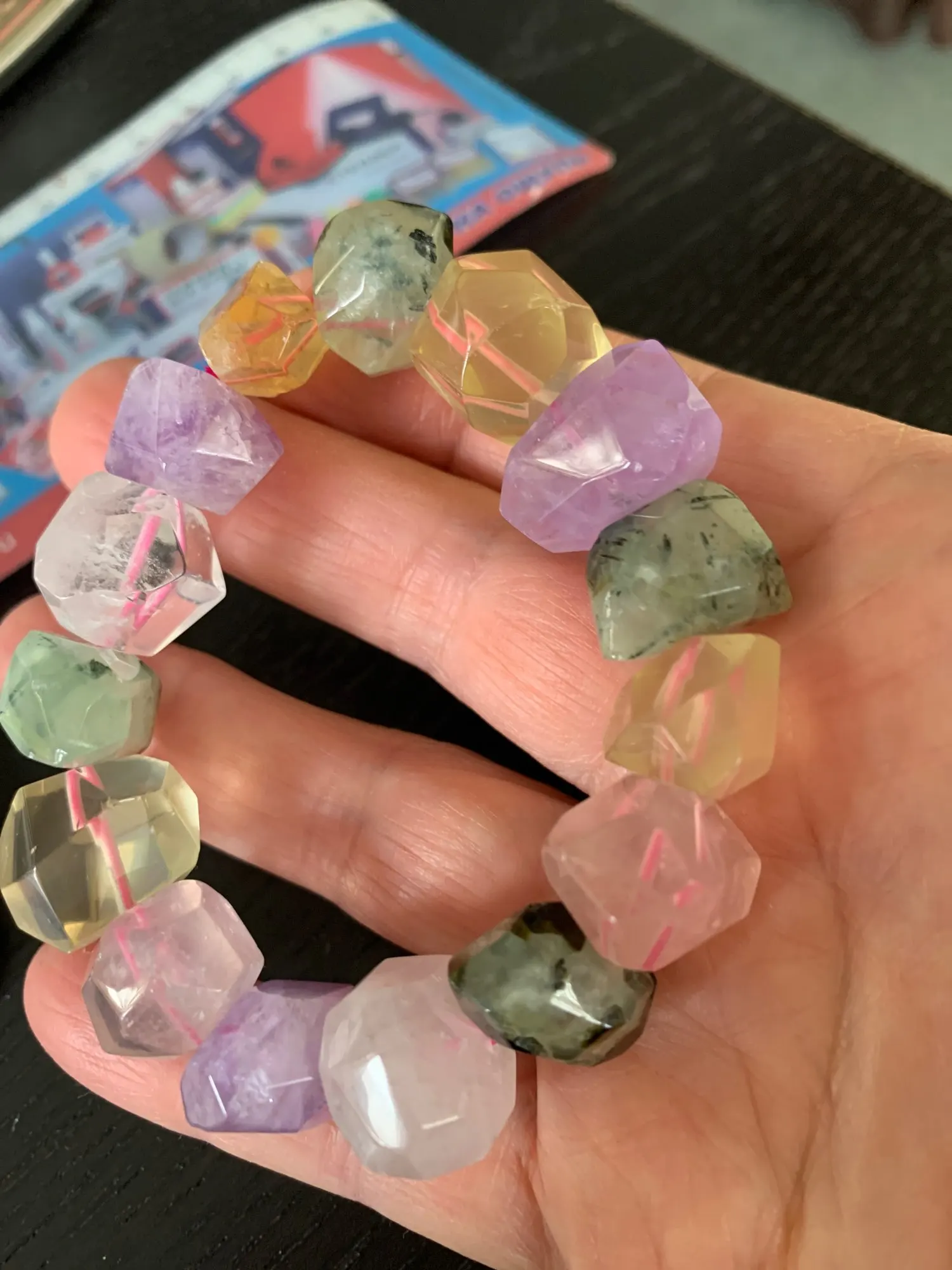 Bracelet à facettes, améthyste/quartz ROSE/prehnite/citrine/ 13x18mm, à facettes baroque 7.5 pouces, FPPJ FPPJ
