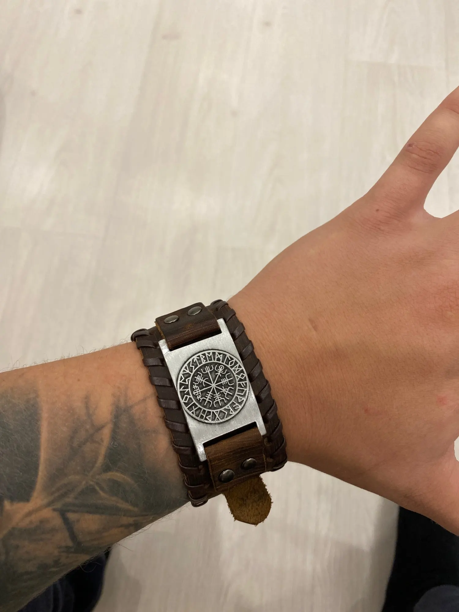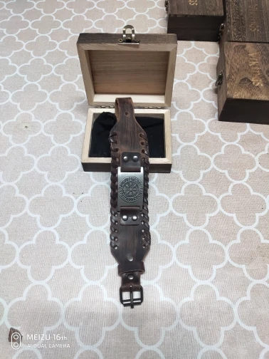 Bracelet en cuir pour hommes, large, Punk, corde tressée, manchette en alliage, Bracelet Viking, bijoux avec boîte en bois