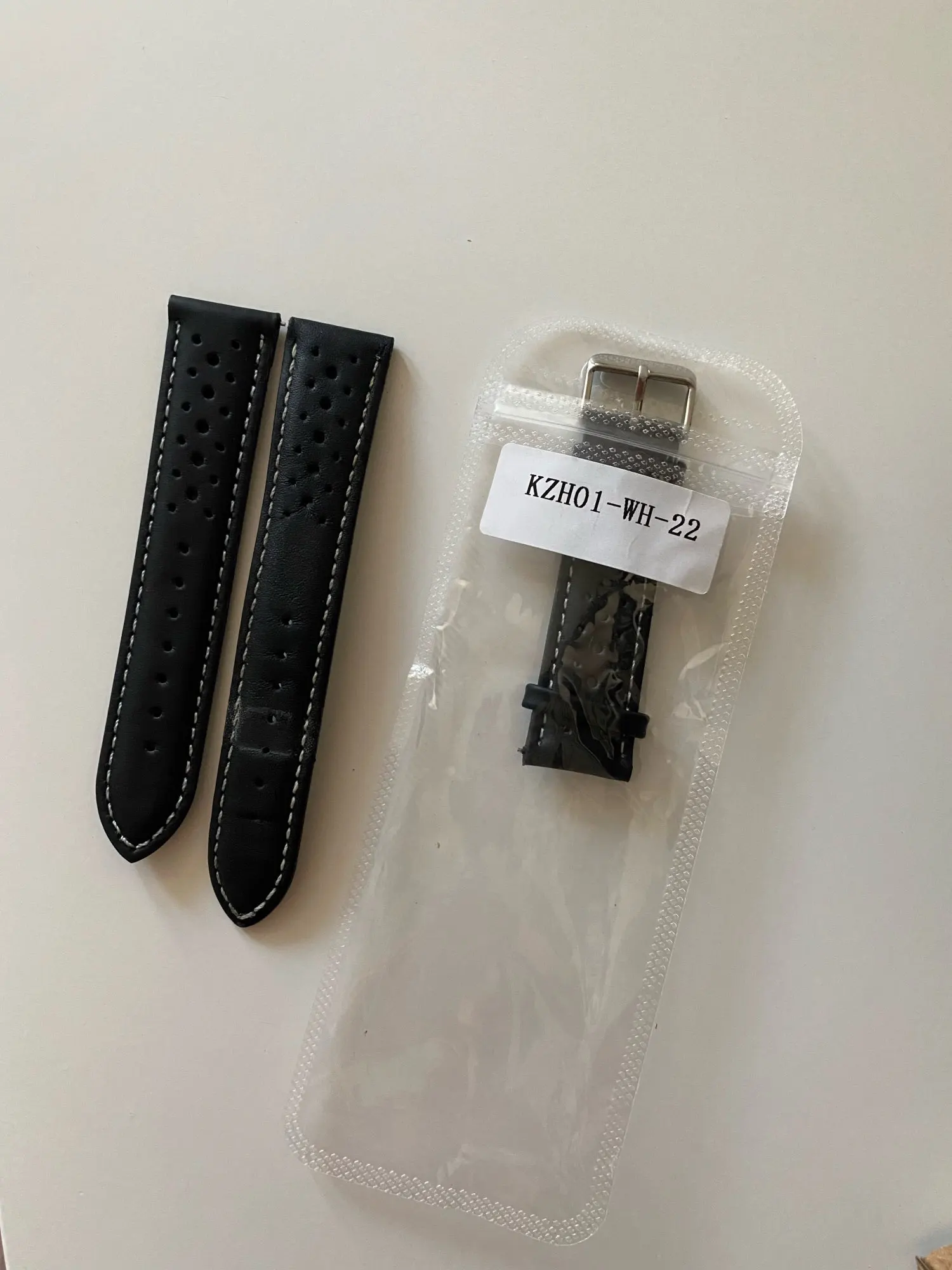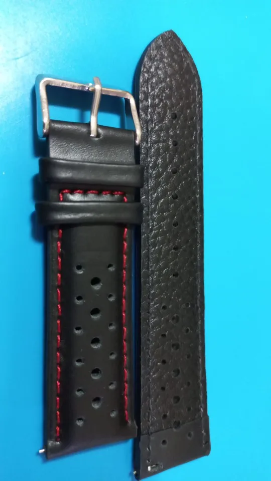 Bracelet en cuir véritable pour bracelets de montre, fait à la main, ajouré, noir, rouge, blanc, ligne de couture, 18mm, 20mm, 22mm, 24mm, KZH01