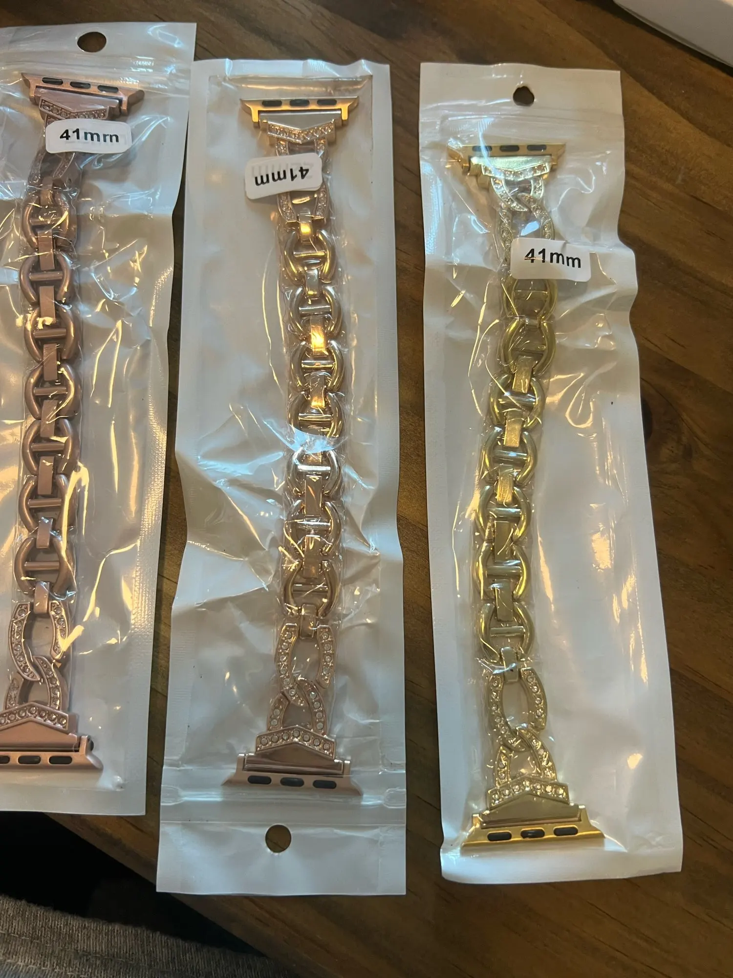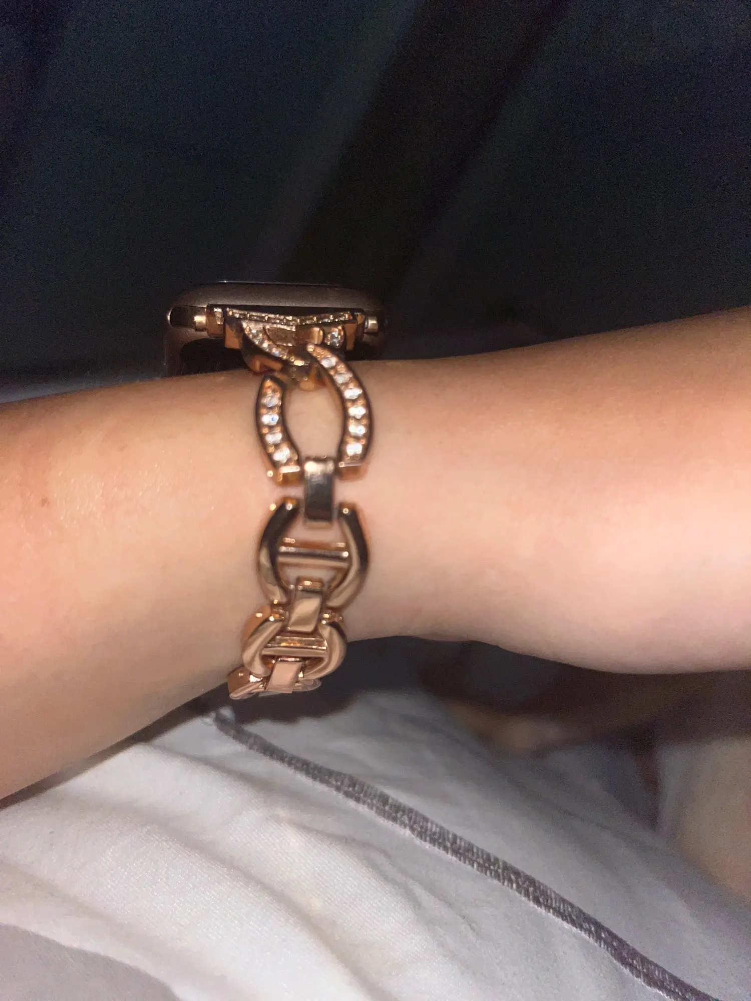 Produit conforme à la description. Joli bracelet féminin, mailles assez larges. La couleur rose gold correspond exactement au rose gold d’origine de la montre. Convient au petit poignet en enlevant les mailles mobiles, au final il reste 3 mailles sans strass. Envoi rapide.