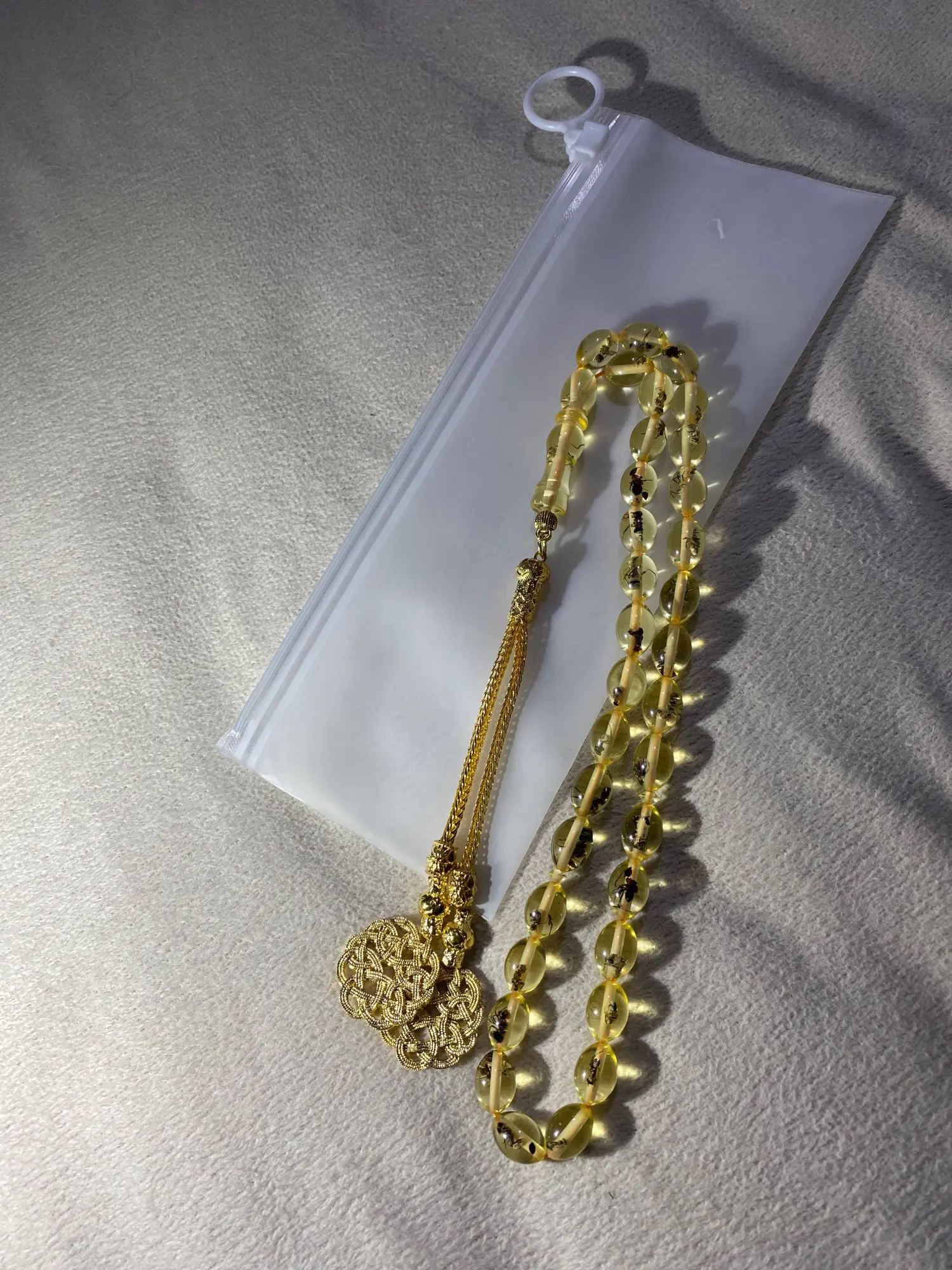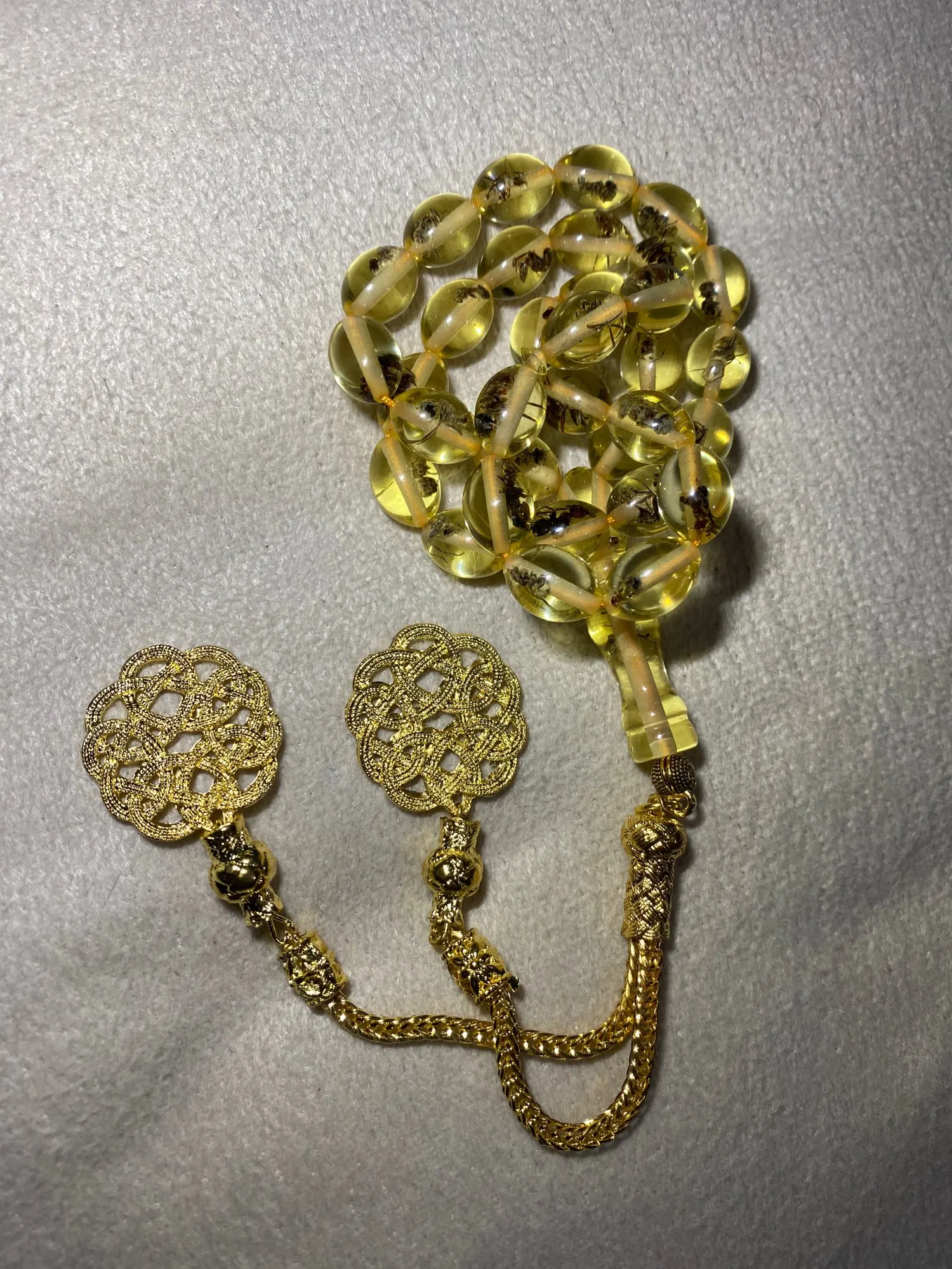 Bracelet en résine à pompon véritable insecte doré, Kazaz, cadeau pour l'aïd musulman, rosaire pour homme, perles de prière musulmane, Misbaha, islamique turque