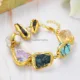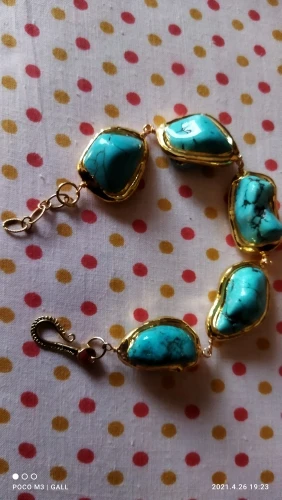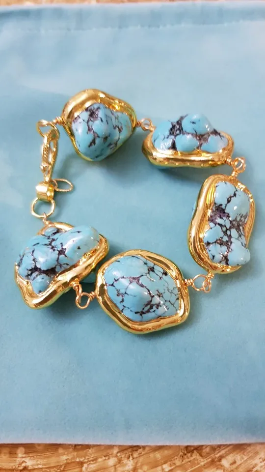 Bracelet howlite bleu, 9 pouces, plaqué or jaune 24 K