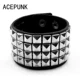 Bracelet large à rivets en cuir Punk Rock, 4 rangées de clous carrés de 9MM, deux boucles, taille réglable