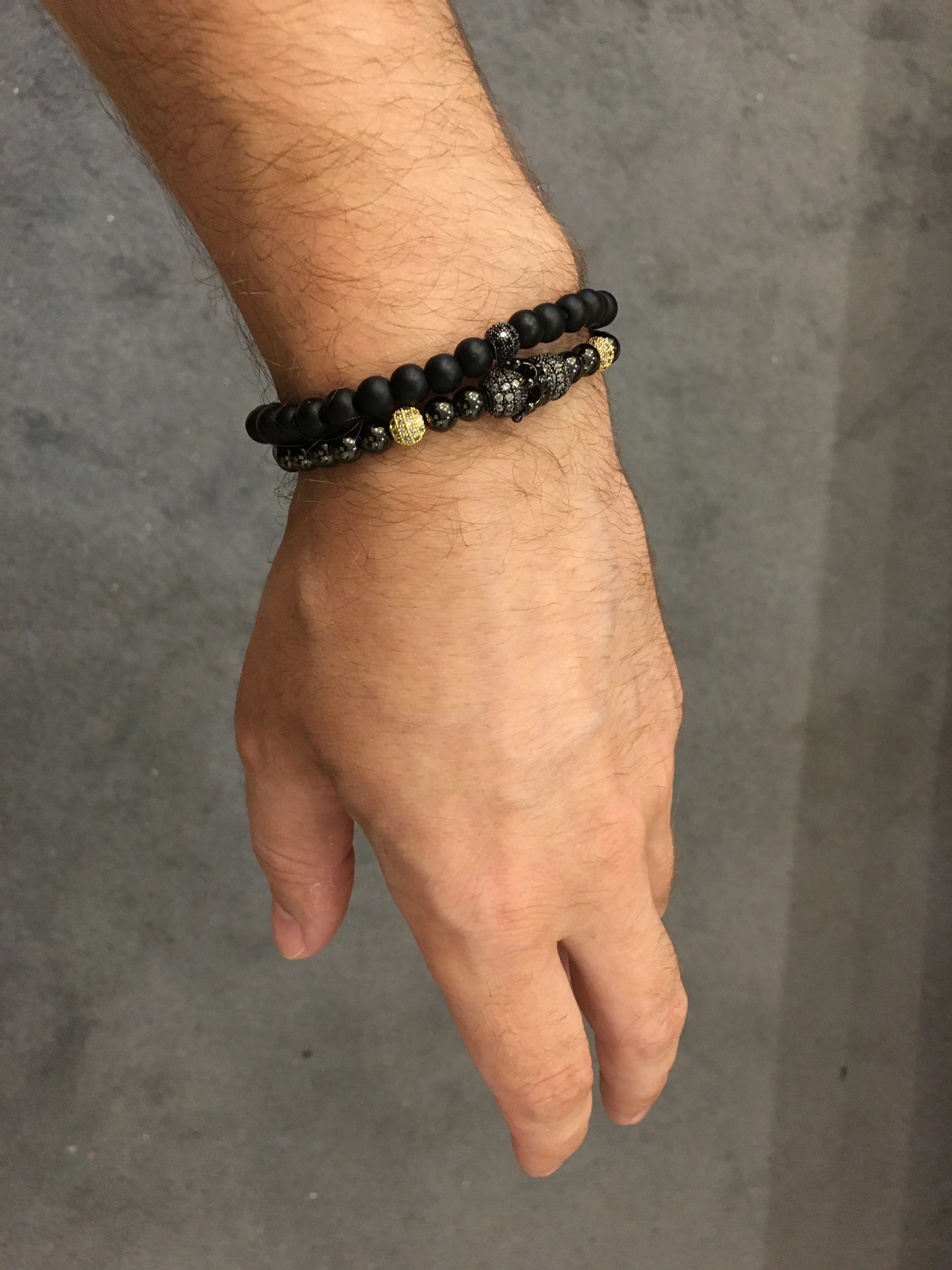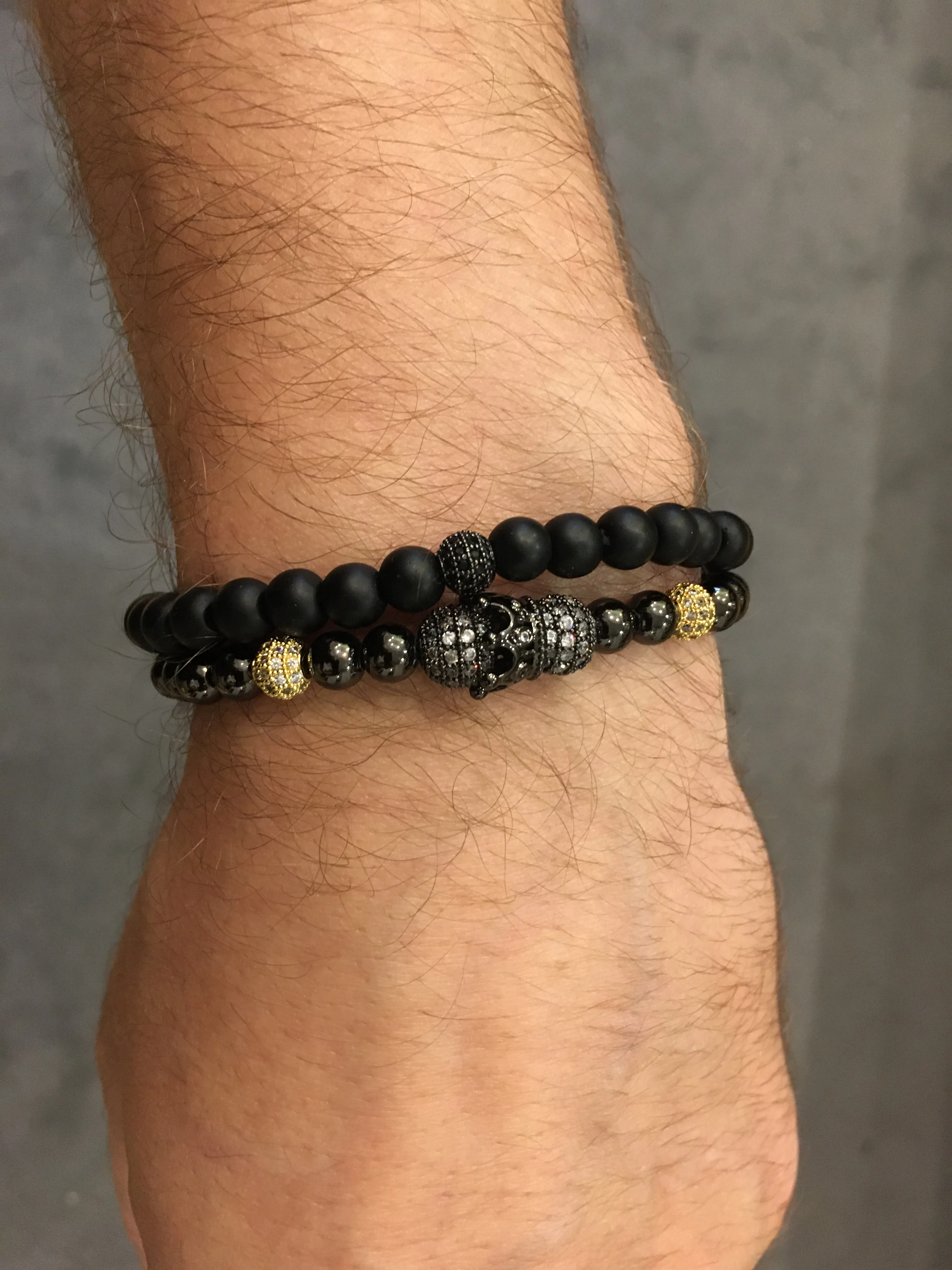 Bracelet luxueux pour hommes, 2 pièces/ensemble, Bracelet à breloques pavé, CZ Punk, perles, crâne, bijoux cadeau
