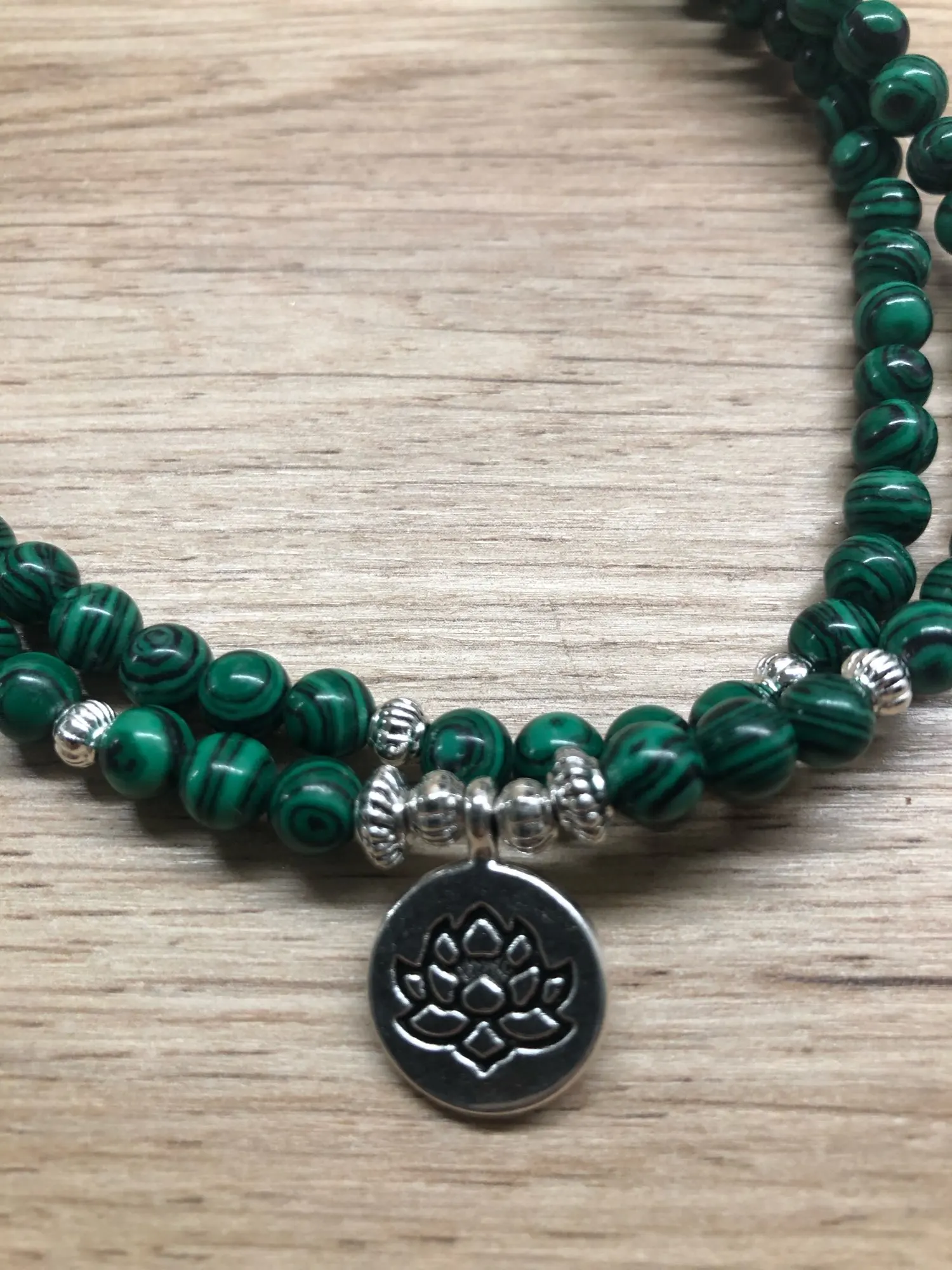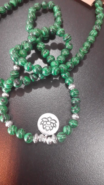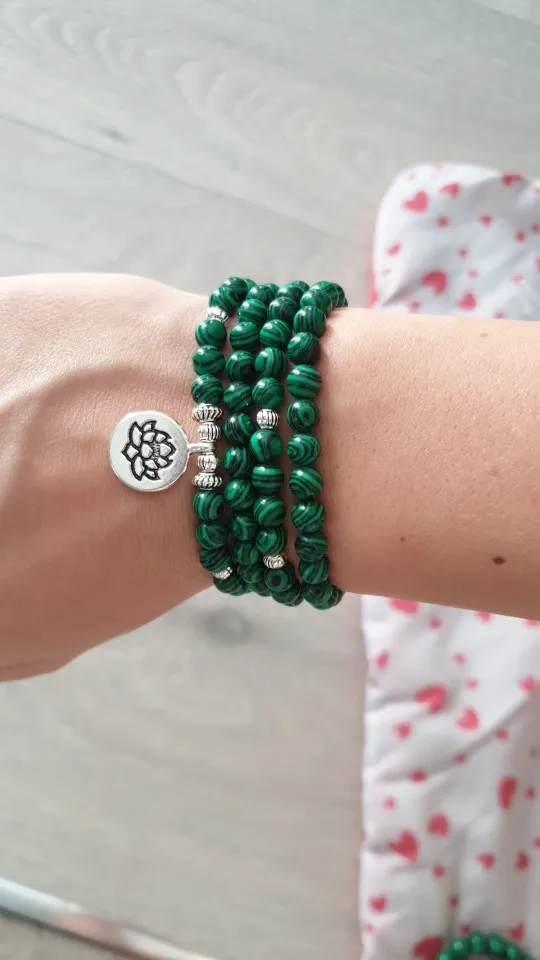 Bracelet Mala tibétain, 108, perles Malachite, Yoga Lotus OM bouddha, 6 MM