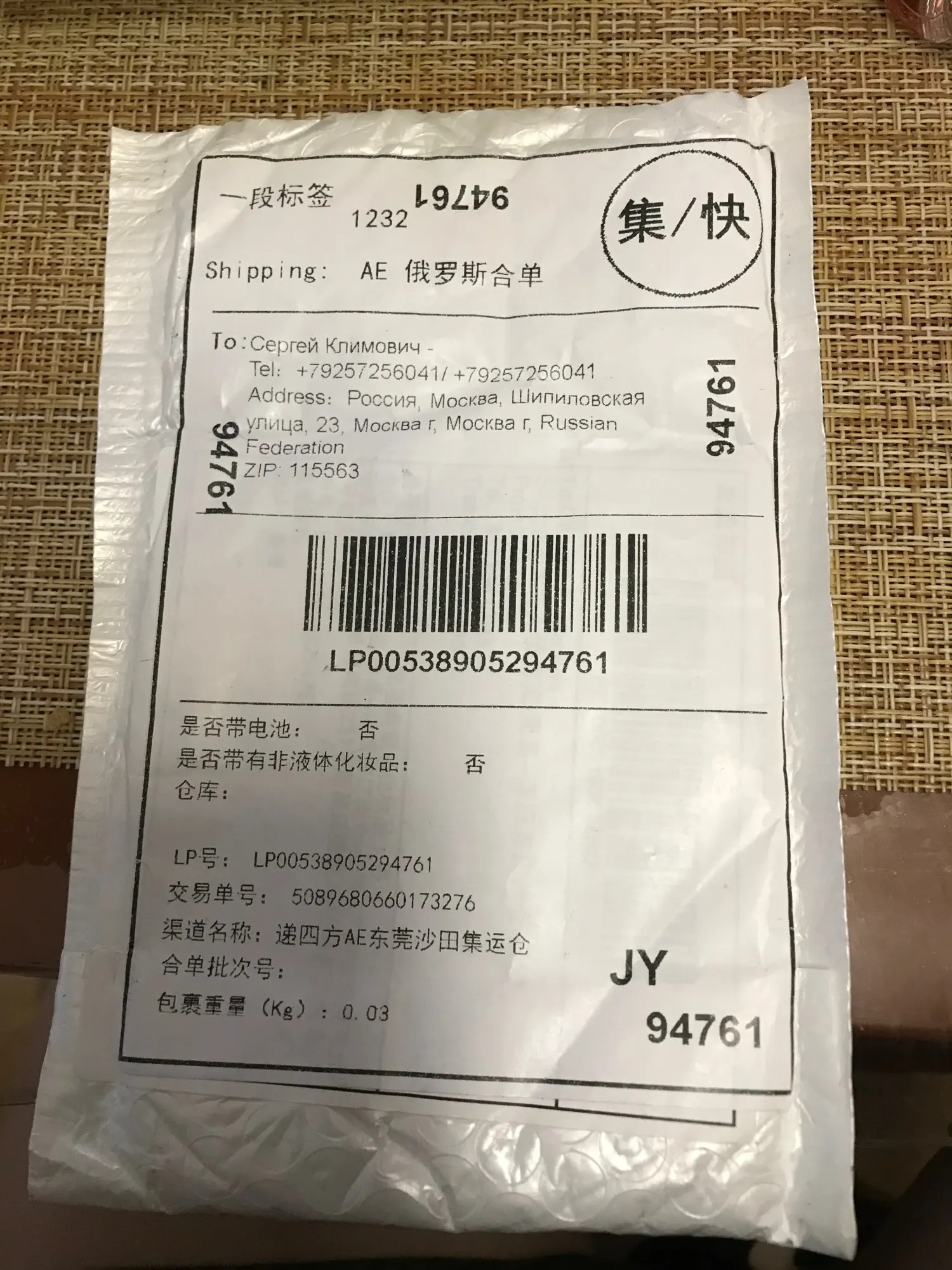 Évaluation Aliexpress :
