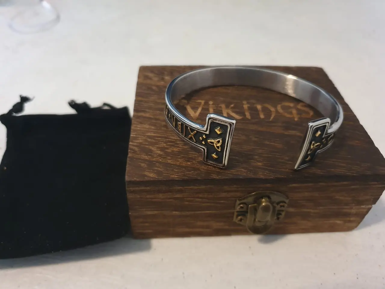 Bracelet nordique en acier inoxydable, 1 pièce, bracelet Viking, ne se décolore jamais, avec boîte en bois comme cadeau