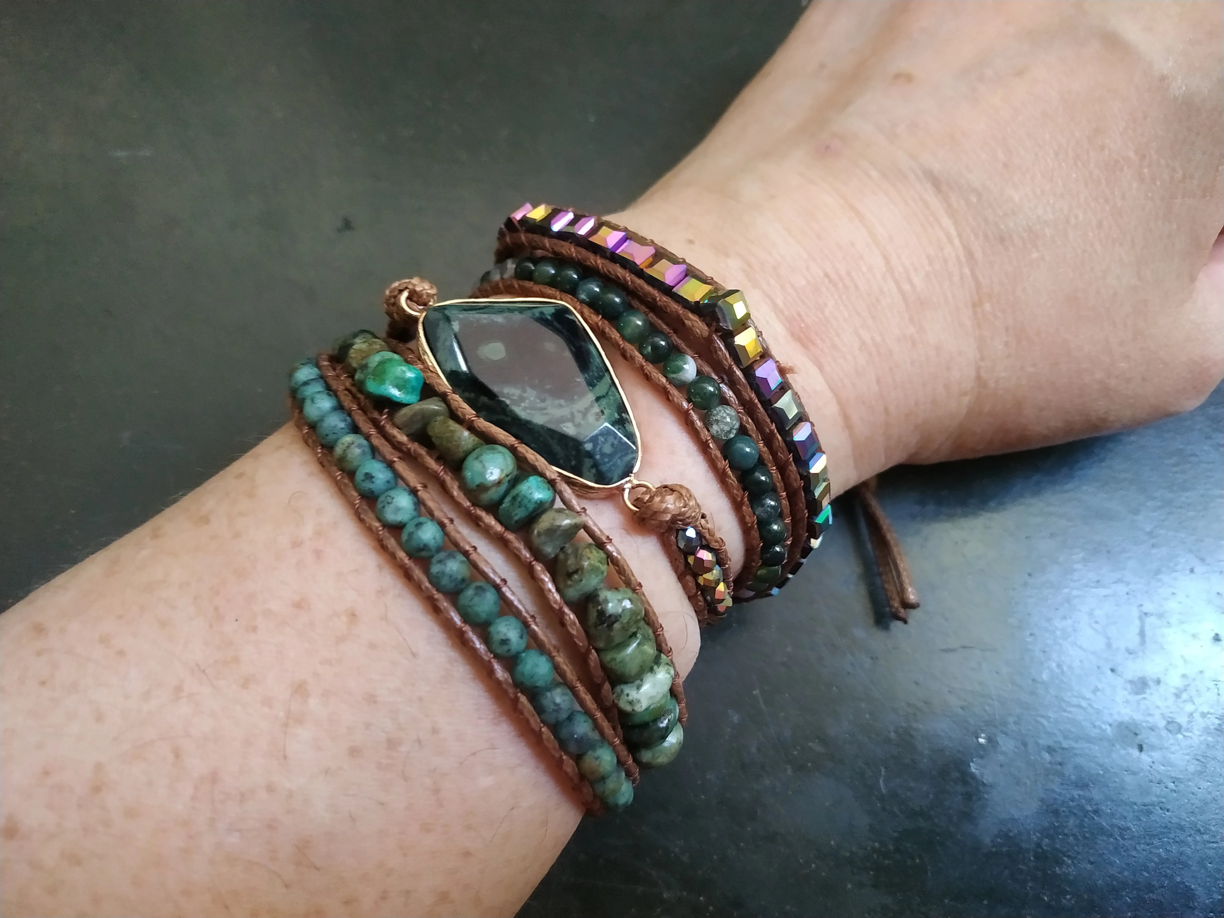 Bracelet style bohème africain Turqu, pierres naturelles, herbe, charme vert, 5 brins tissés, cadeau Bracelets d'enveloppement livraison directe