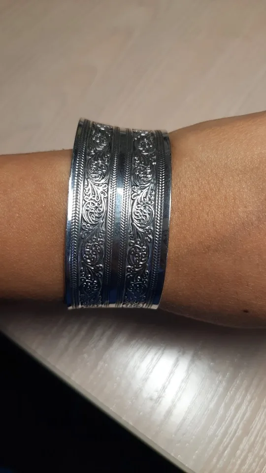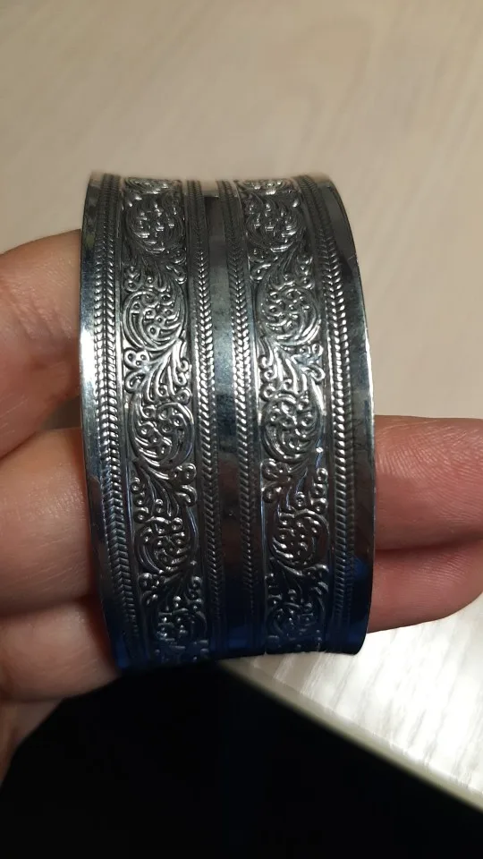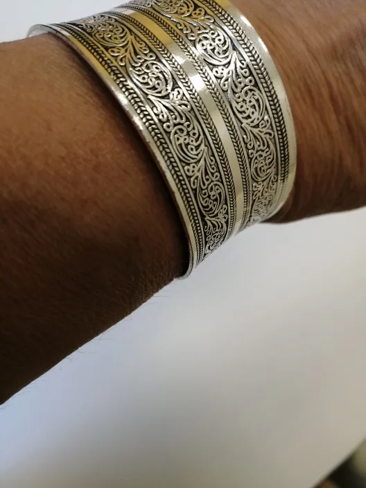 Bracelets Vintage pour femmes, accessoire floral porte-bonheur, imprimé floral, plaqué argent tibétain, manchette, large, nouveauté