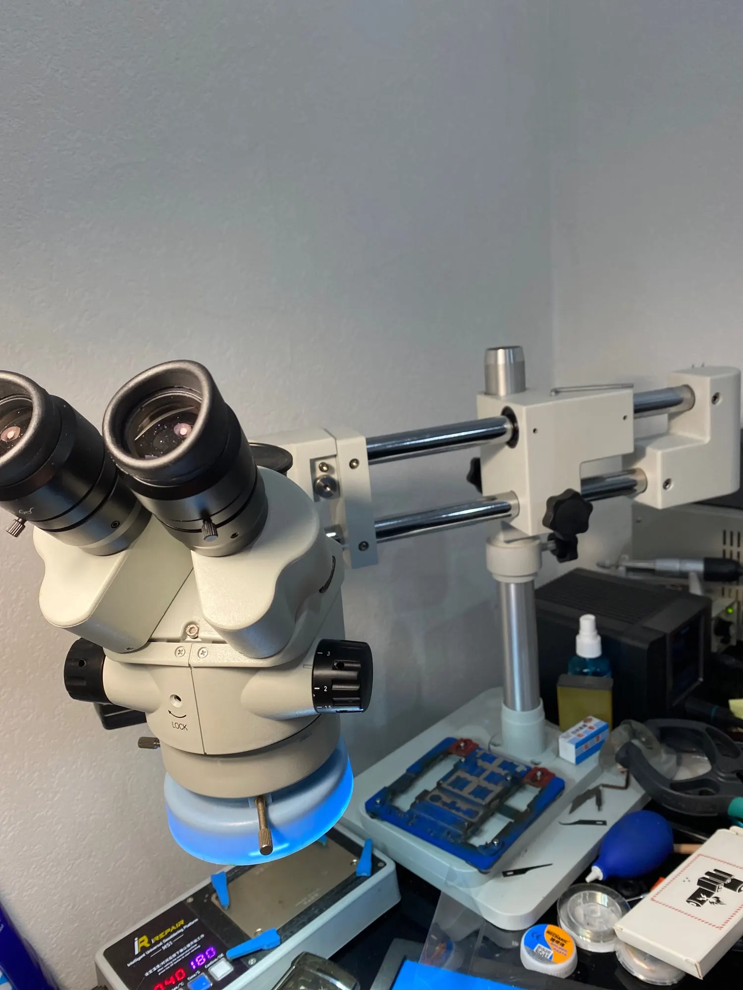 Bras universel de support de support de Microscope stéréo trinoculaire de Zoom industriel de laboratoire de Double Boom accessoires de Microscopio de 76mm