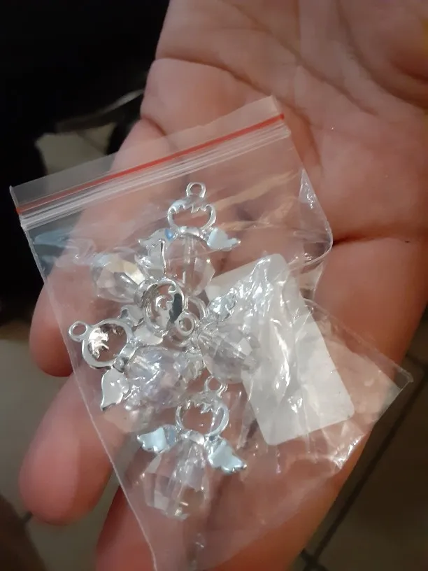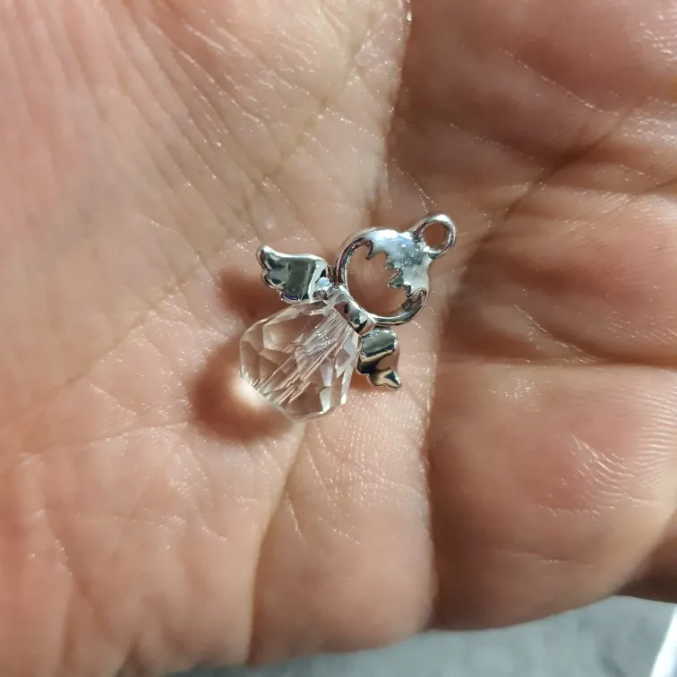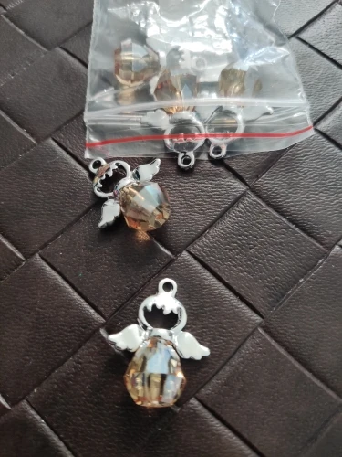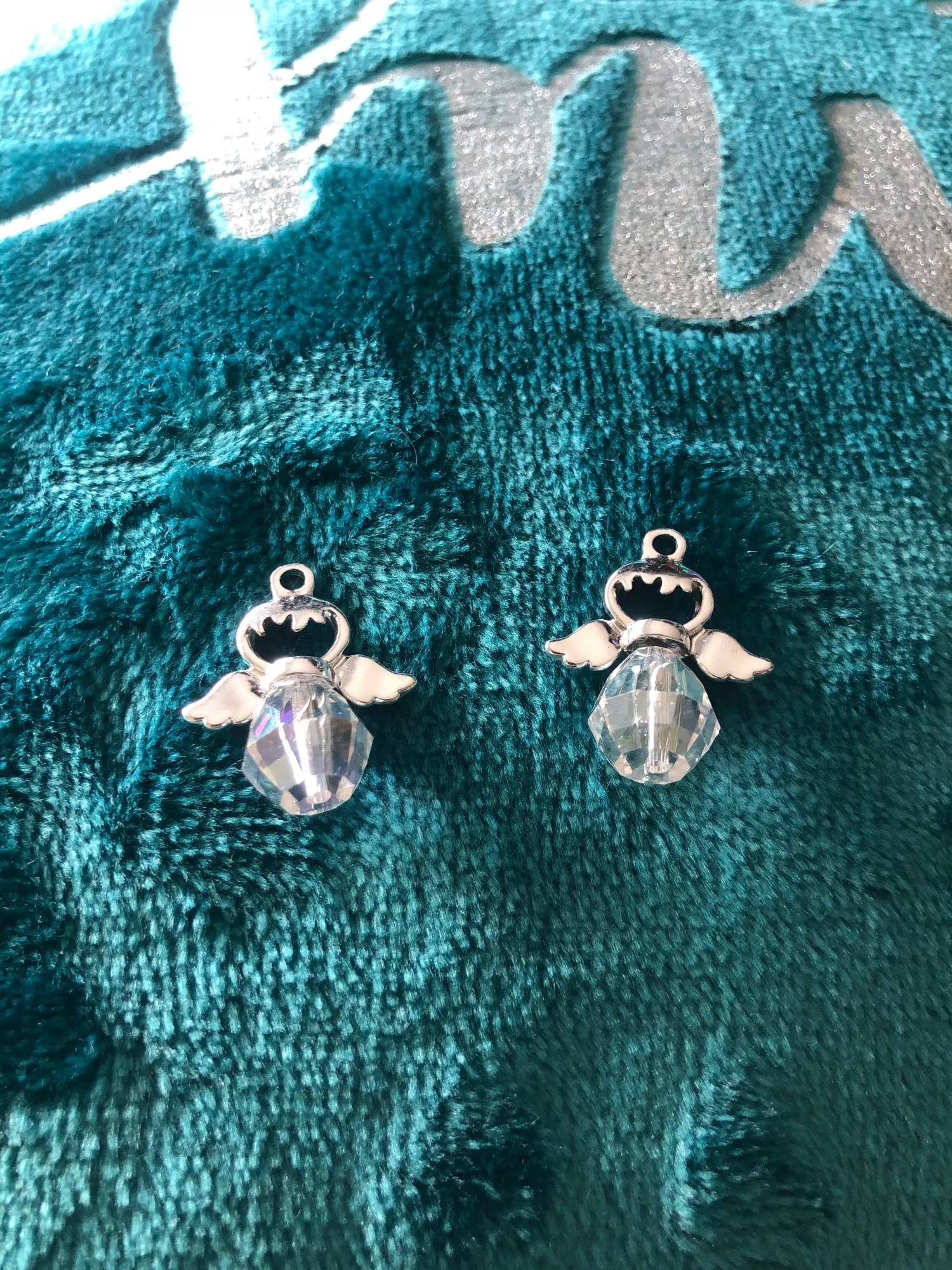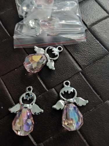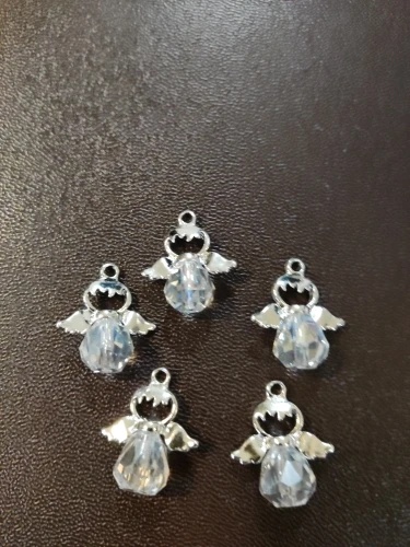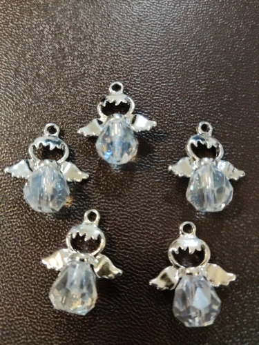 Breloques ange en verre à facettes en alliage de Zinc couleur argent à facettes 21mm( 7/8 ") x 19mm( 6/8") pour la fabrication de bijoux à bricoler soi-même, 5 pièces
